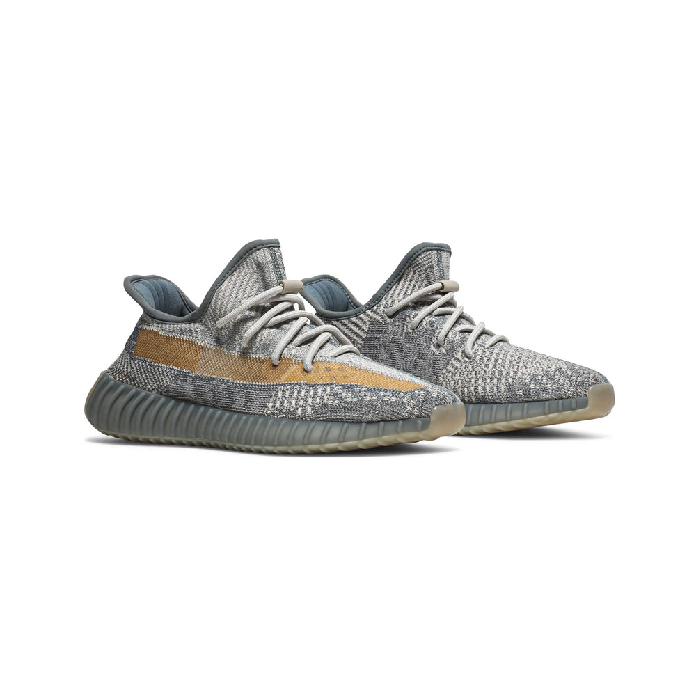 The 'Israfil' iteration of the Yeezy Boost 350 V2 features a muted color palette that captures attention through its earthy and versatile tones. The upper is constructed using Adidas’s signature Primeknit material, offering a snug, adaptive fit. The Primeknit is interwoven with shades of grey and tan, creating a subtle yet intricate pattern. A signature side stripe in translucent mesh runs along the lateral side, adding a hint of contrast and a modern edge. The midsole, equipped with Boost cushioning technology, ensures unparalleled comfort and responsiveness, making it suitable for both daily wear and long-term use. This combination of aesthetic and functional design makes the 'Israfil' a notable addition to any sneaker collection.