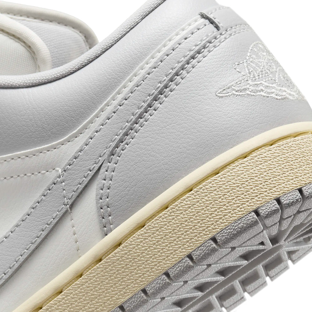The Air Jordan 1 Low 'Coconut Milk Neutral Grey' Women's (2024) blends the iconic Air Jordan 1 silhouette with a fresh, understated colorway. Offering a refined yet modern twist on a classic design, this edition is ideal for those who appreciate versatility and style. The combination of neutral tones and premium materials makes this sneaker an elevated choice for everyday wear. Overview This iteration of the Air Jordan 1 Low is highlighted by a clean "Coconut Milk" leather base, offering a soft and smooth finish that exudes sophistication. The neutral grey leather overlays contrast subtly against the base, providing depth and a sleek finish. The signature Nike Swoosh comes in a muted grey shade, seamlessly blending into the overall design. A classic white midsole with a grey outsole enhances the minimalist aesthetic, while the embroidered Wings logo on the heel adds a touch of brand authenticity. The smooth leather construction ensures durability and comfort, while the timeless low-top silhouette makes it a versatile addition to any wardrobe. Key Highlights • Timeless Air Jordan 1 Low Silhouette: Features the iconic low-top design, ensuring both comfort and style for daily wear. • Premium Leather Construction: Crafted with a high-quality leather base and overlays, offering durability and a refined look. • Neutral Grey and Coconut Milk Colorway: Subtle, versatile tones that complement a variety of outfits, perfect for both casual and elevated looks.