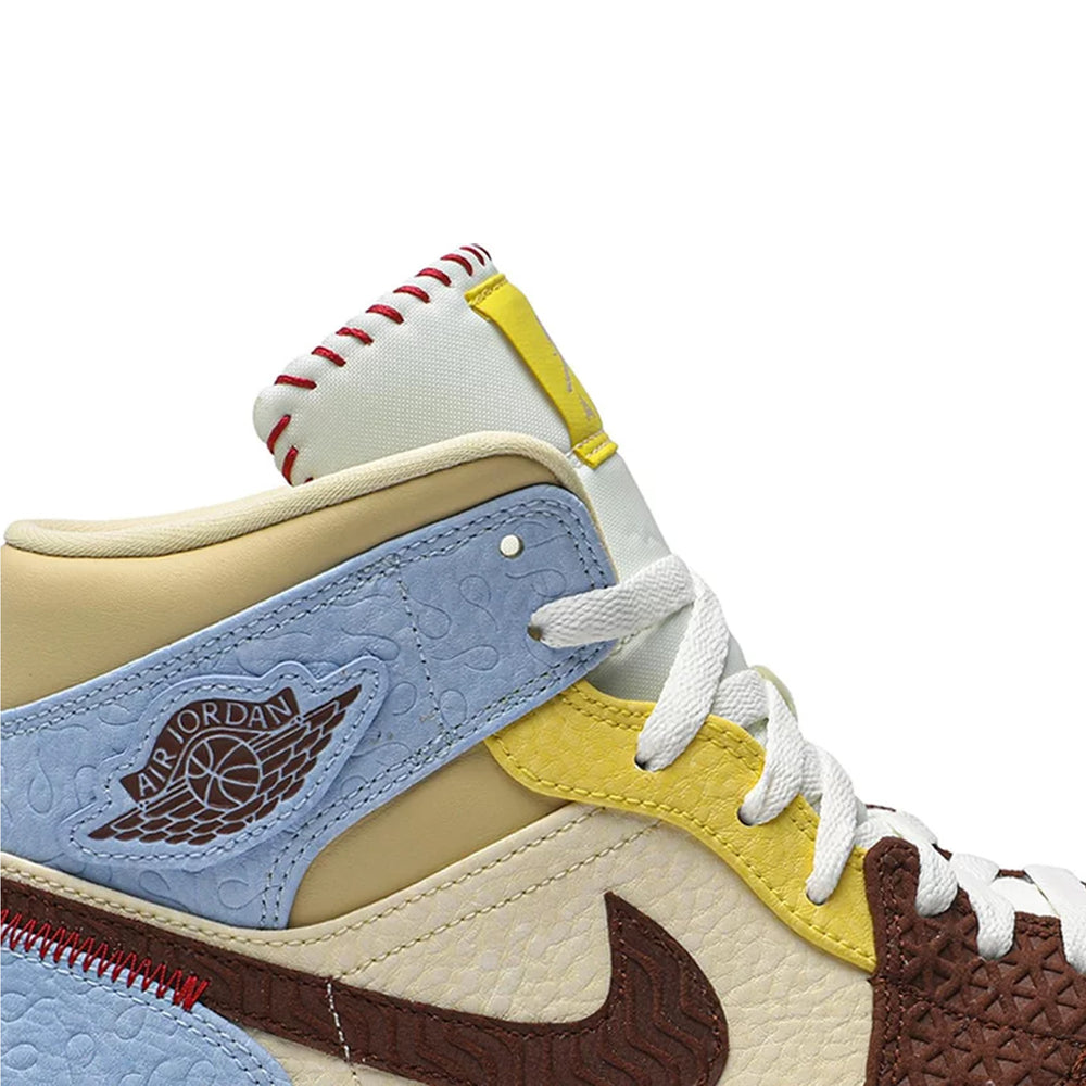Crafted with a combination of premium materials, the Air Jordan 1 Mid SE 'Fearless Maison Chateau Rouge' features a luxurious mix of leather and intricate stitch detailing, reminiscent of traditional African craftsmanship. The warm "Cider" and "Gold" tones create a vibrant contrast against the clean white leather base, while geometric patterns and embossed overlays showcase the meticulous artistry of Maison Chateau Rouge. The sneaker is finished with a unique lace tag featuring the Maison Chateau Rouge logo, reinforcing its collaborative nature. The tongue features "Maison Chateau Rouge" branding, adding a layer of exclusivity to this already bold design. Celebrating culture, craftsmanship, and individuality, this Air Jordan 1 Mid SE stands as a symbol of unity and fearless creativity.