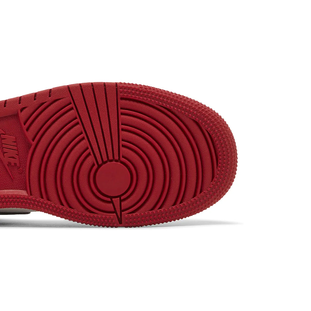 The 'Black Toe Reimagined' GS showcases a premium construction with a white leather base, contrasted by bold black overlays that extend from the forefoot to the ankle collar. The signature "University Red" graces the heel and outsole, maintaining the color-blocking synonymous with the "Black Toe" lineage. Modern touches, such as vintage-inspired detailing and a pre-aged midsole, introduce a nostalgic yet contemporary vibe. The timeless Nike Air branding on the tongue and the embossed Wings logo on the collar reinforce its heritage-driven design. This iteration pays homage to the origins of the Air Jordan 1 while offering thoughtful updates that resonate with today's sneaker culture.