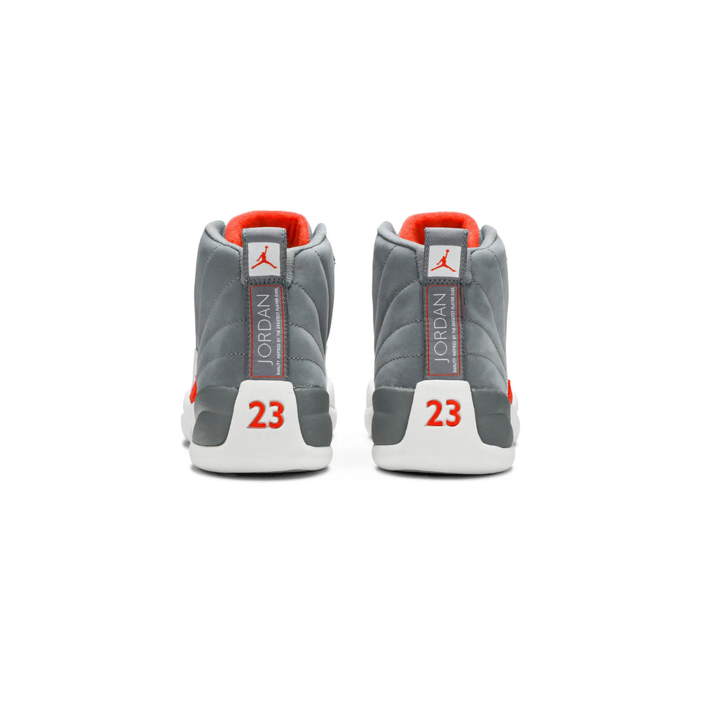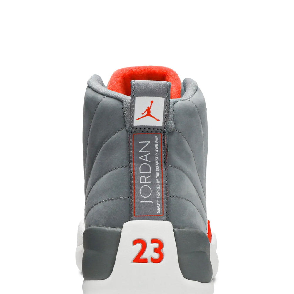 The Air Jordan 12 Retro 'Cool Grey' (2012) reintroduces a beloved colorway with a refined design, combining modern sophistication and the timeless style of the Jordan Brand. This iteration of the iconic Air Jordan 12 silhouette showcases a versatile color palette that remains as popular today as it was upon its release, making it a must-have for sneaker enthusiasts and collectors alike. Overview The Air Jordan 12 Retro 'Cool Grey' features a premium "Cool Grey" leather upper, complemented by smooth suede overlays. The sleek, muted grey tones are punctuated by vibrant accents of white and metallic silver, which highlight the eyelets, tongue branding, and the signature Jumpman logo. The design captures the essence of the original 'Cool Grey' look, blending durability and comfort with a refined aesthetic. The sneaker is supported by a full-length Air-Sole unit for responsive cushioning, while a durable rubber outsole with a herringbone pattern offers traction and stability. Key Highlights • Timeless 'Cool Grey' Colorway: A classic neutral grey base with white and metallic accents, offering versatile styling options and lasting appeal. • Premium Leather and Suede Construction: The combination of high-quality materials ensures both durability and a comfortable fit for everyday wear. • Iconic Air Jordan 12 Silhouette: Staying true to its roots, this model features the signature embossed "Jumpman" logo and the distinguished "TWO3" branding on the tongue.