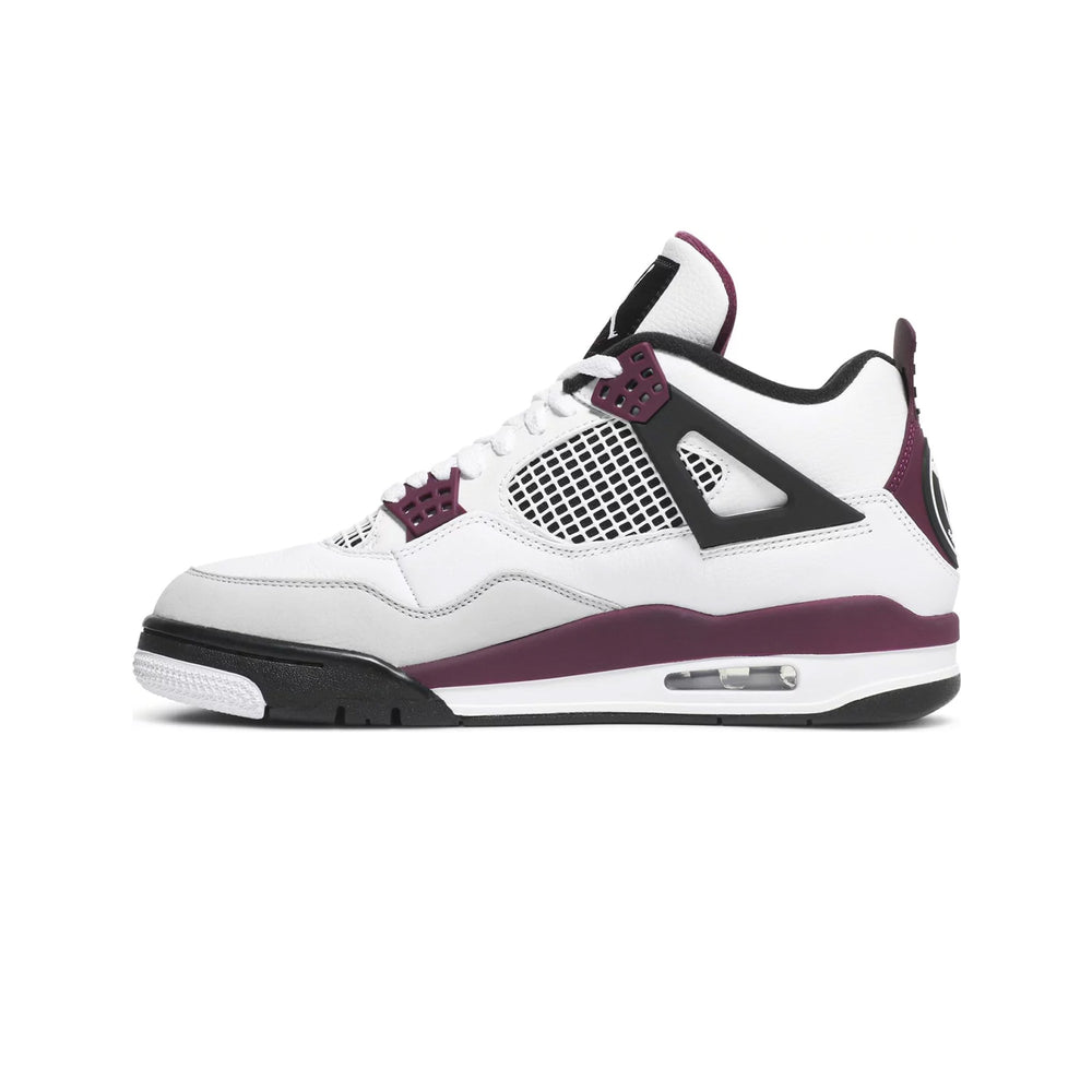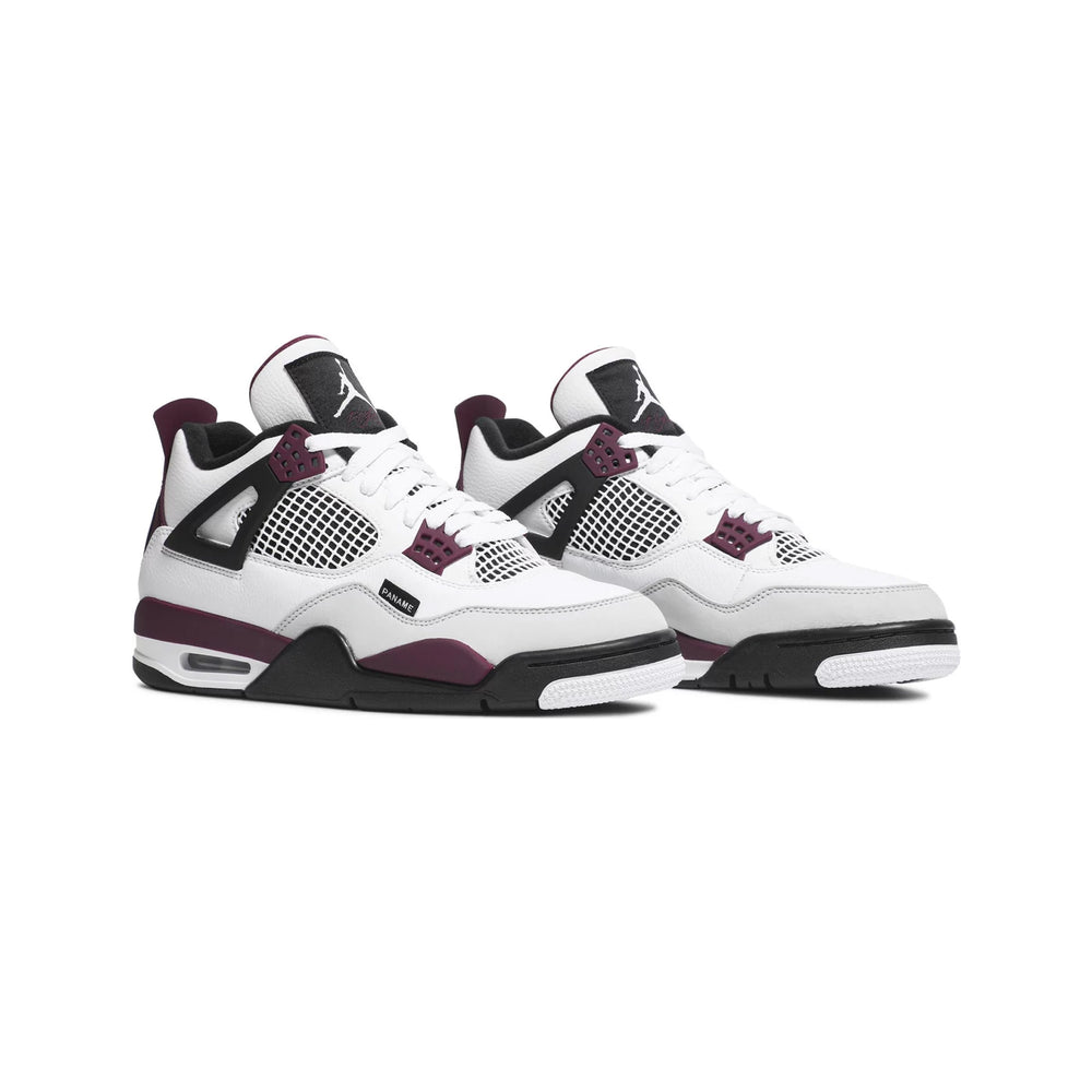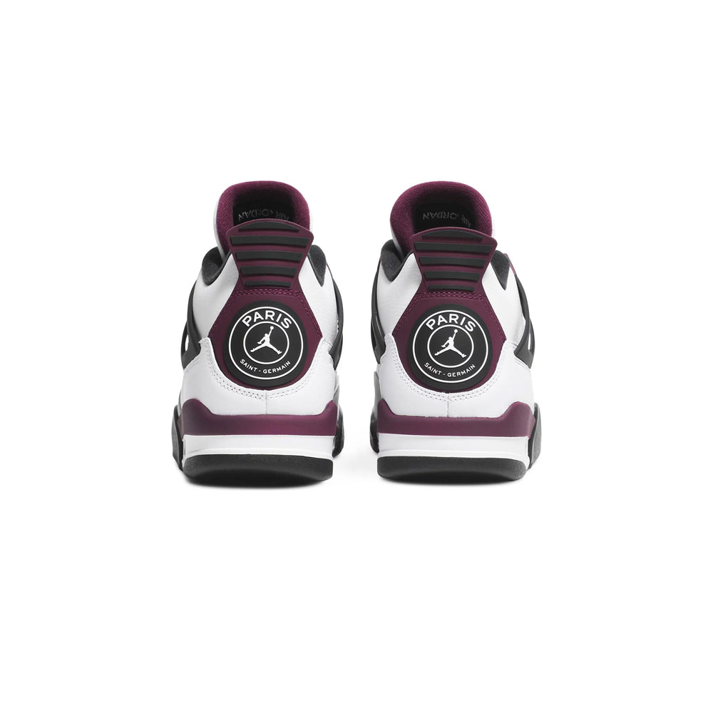 The Air Jordan 4 Retro 'PSG Paris Saint-Germain' (2020) is a celebration of sport and style, paying homage to one of football’s most iconic clubs—Paris Saint-Germain. This collaboration between Jordan Brand and PSG seamlessly merges basketball heritage with football culture, resulting in a striking and sophisticated design that resonates with sneaker enthusiasts and football fans alike. Overview The sneaker features a "White" leather base complemented by "Neutral Grey" and "Bordeaux" accents that embody PSG's signature color palette. The Bordeaux hits on the midsole, tongue, and eyelets deliver a rich contrast, while the “Paname” tag on the lateral side and PSG’s crest on the heel solidify its connection to the Parisian football club. A breathable mesh panel on the sides ensures comfort, making the shoe perfect for both performance and casual wear. The Jumpman logo sits on the tongue, and a visible Air unit in the heel provides the iconic cushioning that Air Jordan models are known for. The combination of premium materials and thoughtful design details reflects the collaboration’s luxury and sport-infused aesthetic. Key Highlights Paris Saint-Germain Collaboration: A nod to the prestigious football club, featuring PSG’s crest and colors for a unique blend of basketball and football culture. Premium Leather Construction: High-quality materials, including soft leather and mesh, offer both durability and comfort for daily wear. Iconic Air Jordan 4 Silhouette: Retains the classic design, enhanced with PSG-themed details, making it a standout addition to any sneaker rotation.
