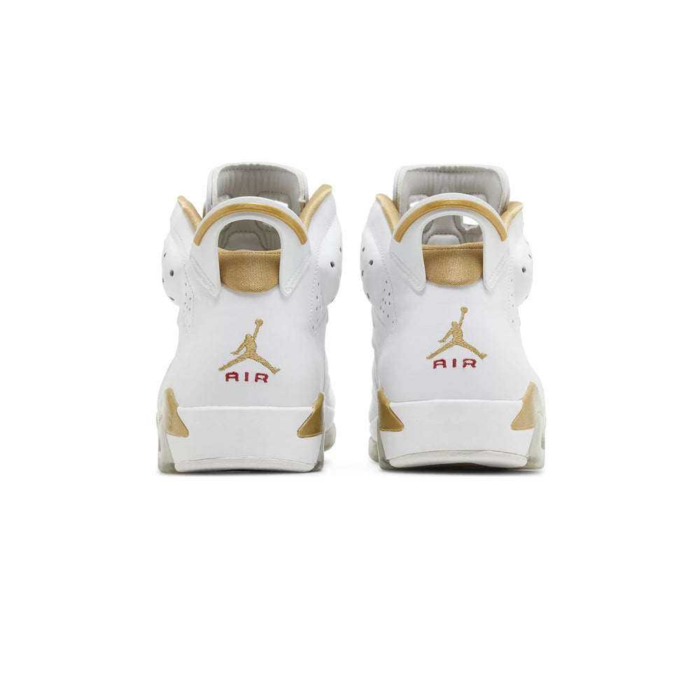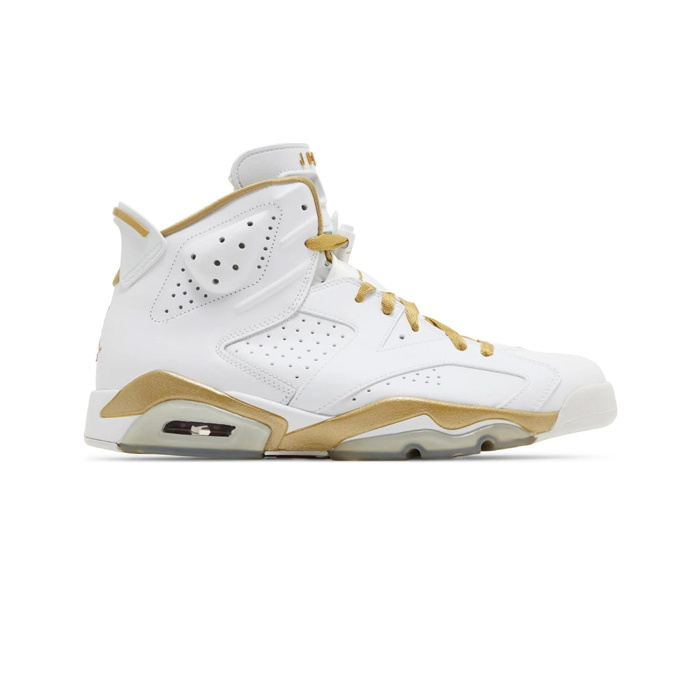Crafted with meticulous attention to detail, the Air Jordan 6 in the 'Golden Moments Pack' showcases a pristine white leather upper contrasted by opulent gold accents. This sophisticated palette not only exudes luxury but also pays homage to Jordan's Olympic glory. The Air Jordan 7 complements this with a sleek black nubuck upper, also highlighted by gold detailing, embodying a sense of triumph and resilience. Both pairs are designed with premium materials, ensuring durability and a high-end feel.
