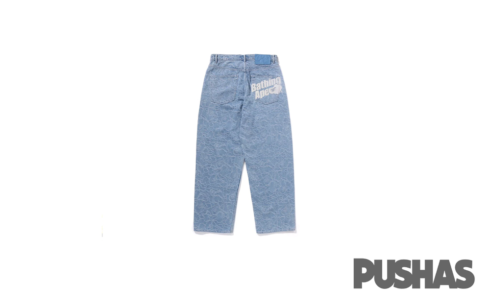 Enhance your wardrobe with the Bape Line Camo Denim Pants in 'Light Blue,' a limited-edition release that embodies the brand's legacy of pushing boundaries in contemporary streetwear. Stay ahead in the fashion scene by securing your pair now and experiencing the unmatched quality and style that only Bape can deliver. Elevate your urban fashion game with these Bape denim pants, setting the trend for streetwear enthusiasts worldwide.
