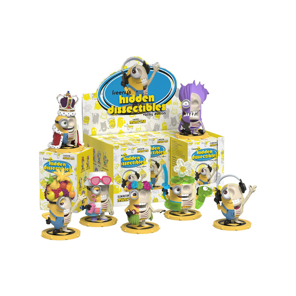 Mighty Jaxx are proud to present the Vacay Edition of Minions Hidden Dissectibles - 4-inch scale Minions figures in iconic style by Jason Freeny Each pack contains one random figure. There are 6 common rarity figures to collect and an extremely rare - King Bob! It's holiday time for our favorite yellow fighters and they're ready to party on the beach! But wait, the party was also infiltrated by an evil servant!