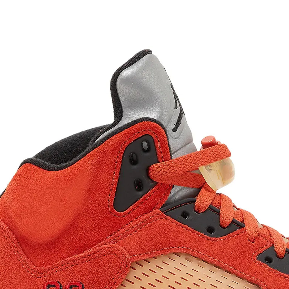 Designed specifically for women, the Jordan 5 'Dunk On Mars' W delivers a fusion of style and comfort. The mid-top silhouette provides ankle support without compromising on a fashion-forward aesthetic. The unique thematic elements, such as the Mars-inspired graphics on the heel and insole, add an extra layer of exclusivity to this space-inspired release.