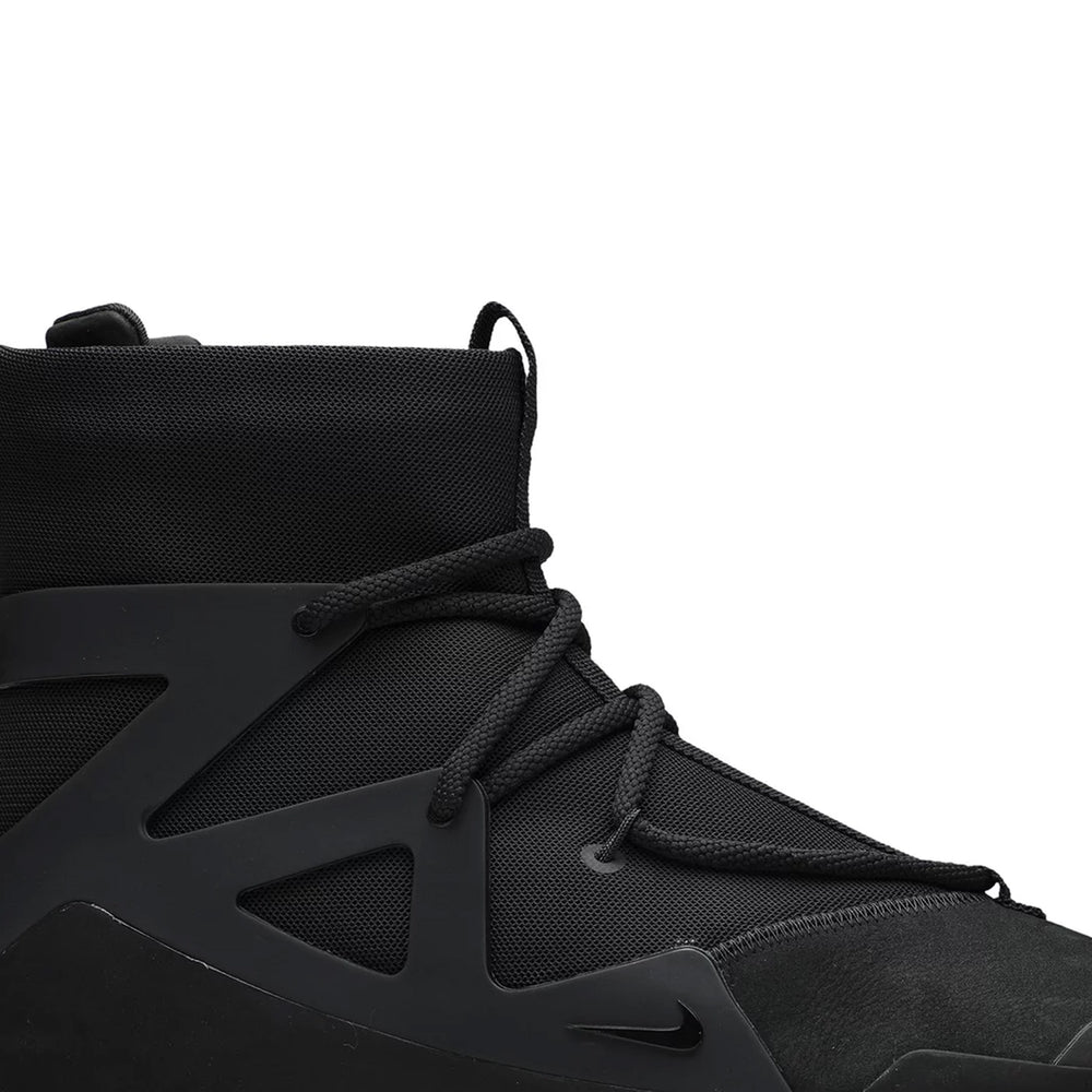 Crafted with premium materials, the Nike Air Fear of God 1 'Triple Black' features a black suede upper that exudes a sense of sophistication and durability. The minimalist design is accentuated by the tonal black laces, zipper closure on the heel, and a sculpted midsole that incorporates Nike's signature Air technology for superior comfort and support. The high-top silhouette not only provides added ankle support but also elevates the shoe's overall aesthetic appeal. Designed for both performance and style, this sneaker embodies the Fear of God ethos, combining functionality with a timeless, understated look.