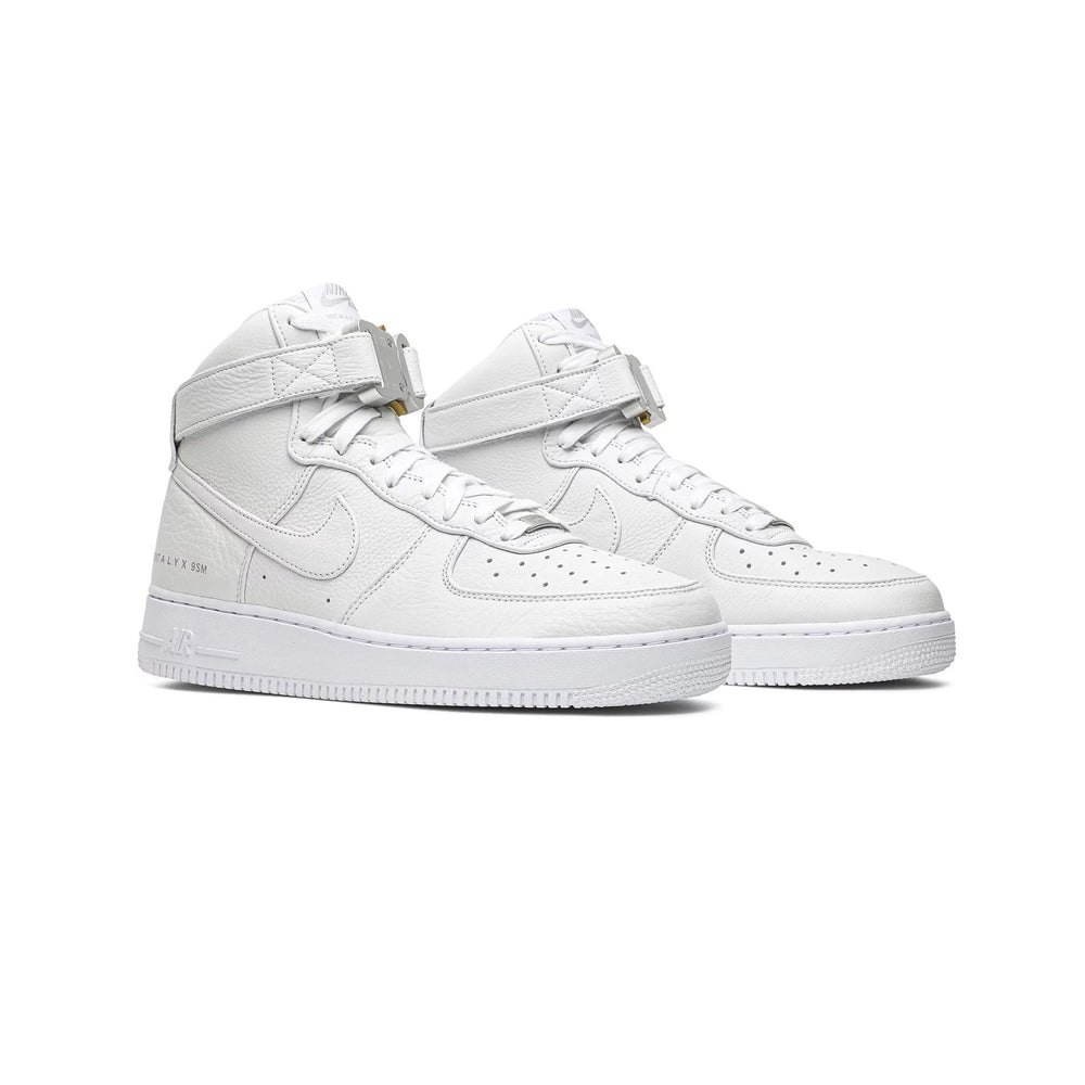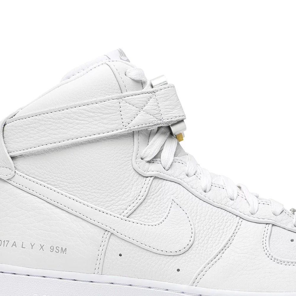 The Nike Air Force 1 High 1017 ALYX 9SM 'White' features a crisp white leather upper, maintaining the classic AF1 design while introducing subtle yet impactful details. The sneaker is adorned with a signature anodized aluminum buckle on the ankle strap, a hallmark of ALYX's industrial-inspired approach. The tonal laces and branding ensure the focus remains on the texture and form, while the co-branded tongue tag and insole highlight the collaborative nature of the design. The Nike Air sole unit delivers reliable comfort and cushioning, making this sneaker as functional as it is fashionable. This collaboration continues to push the boundaries of sneaker culture, merging luxury aesthetics with street-ready wearability.
