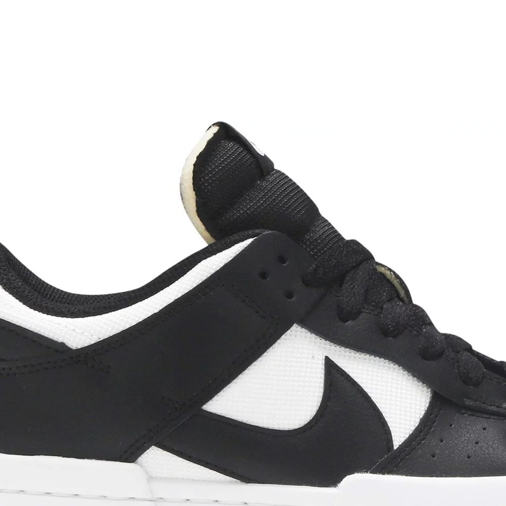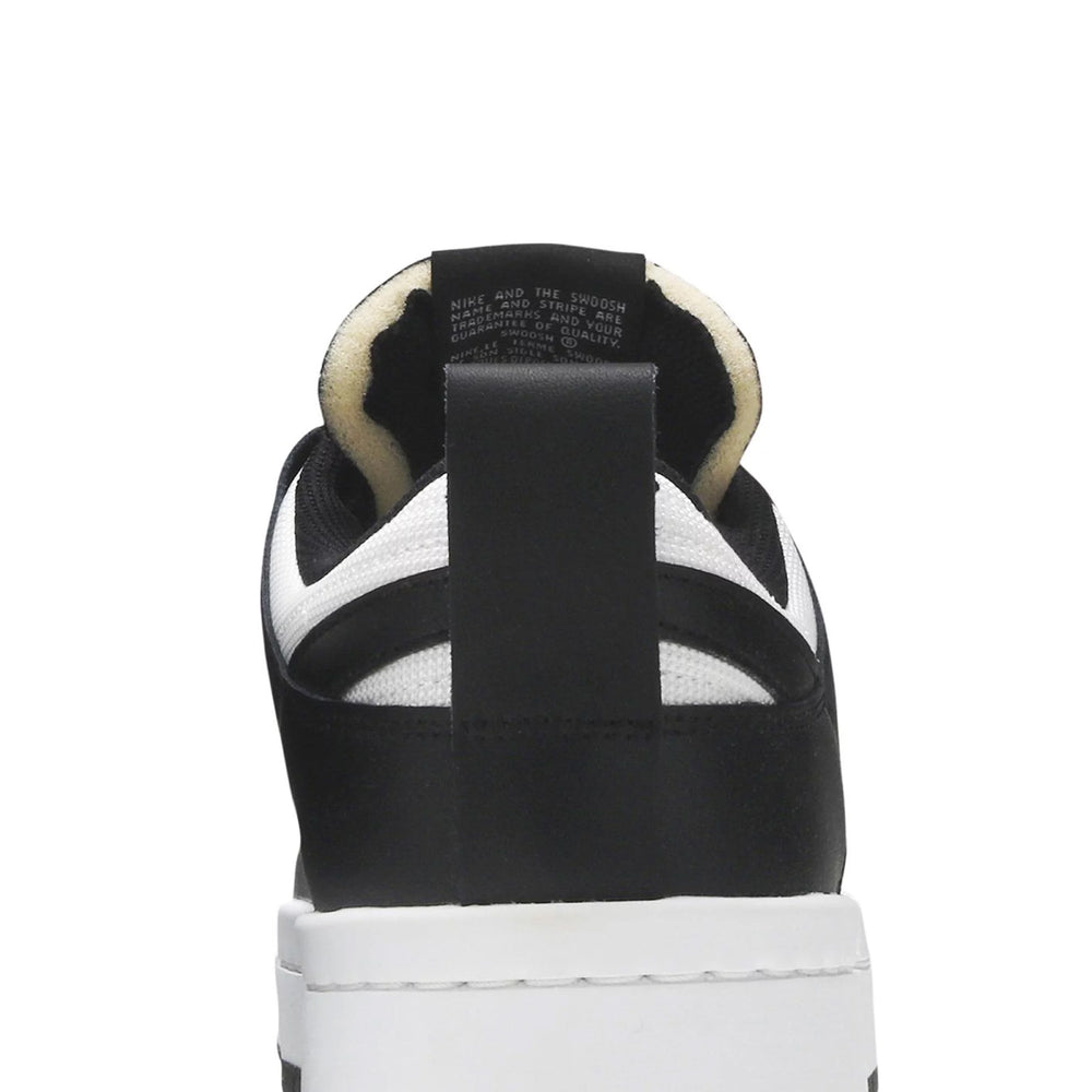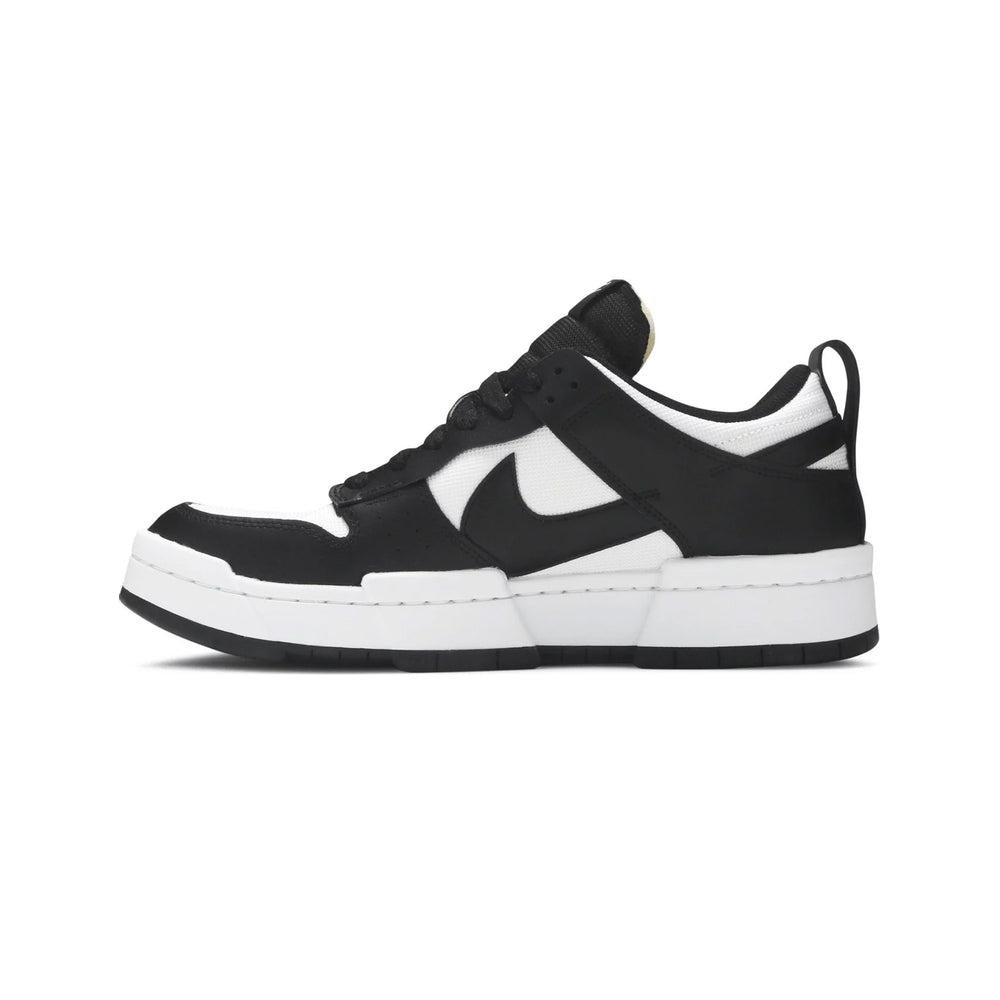 The Nike Dunk Low Disrupt 'Black White' is crafted with a leather upper that combines a sleek black base with contrasting white overlays, creating a striking visual contrast that is both timeless and modern. The sneaker’s design is accentuated by exaggerated proportions and unique elements, such as the oversized midsole and the deconstructed upper, which add a touch of rebellion to the classic silhouette. The black Swooshes on the lateral and medial sides maintain the iconic branding while blending seamlessly with the overall color scheme. The shoe also features a padded collar and a comfortable foam midsole, ensuring optimal comfort for all-day wear. The disruptive design is completed with a durable rubber outsole, providing excellent traction and stability.