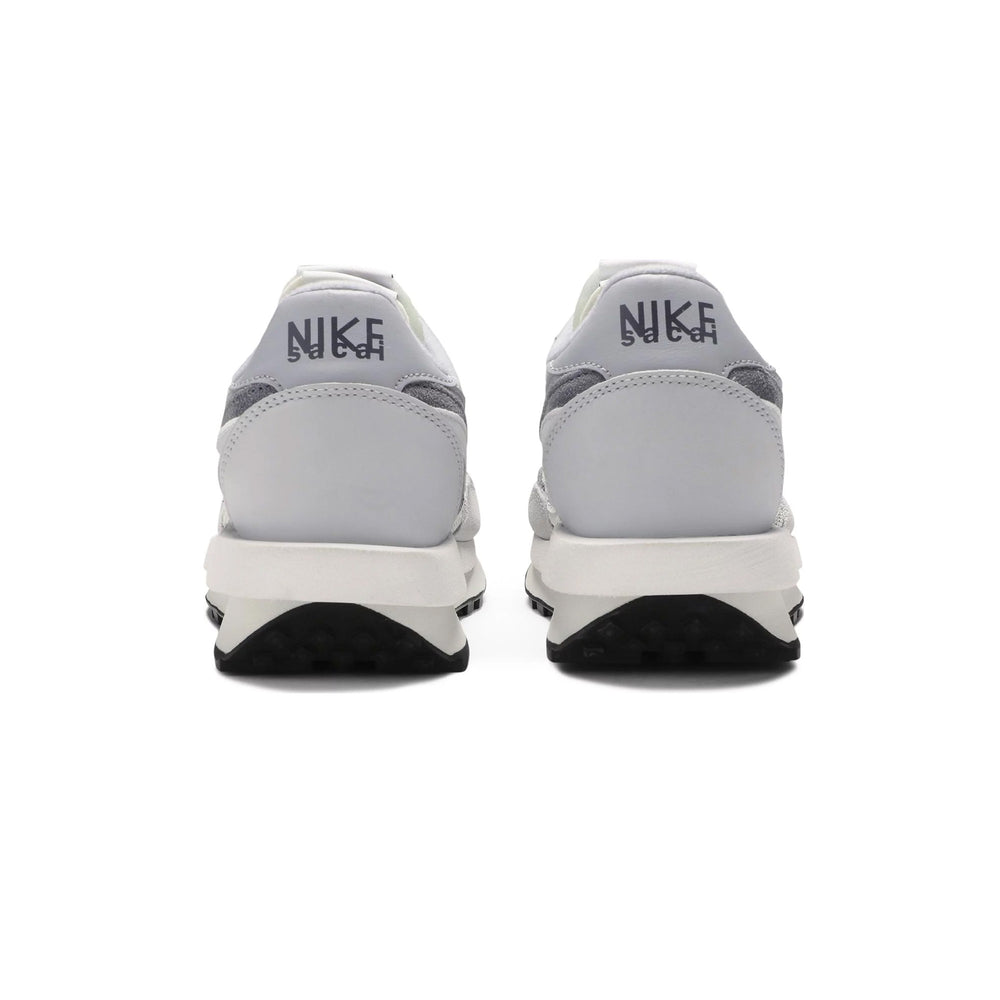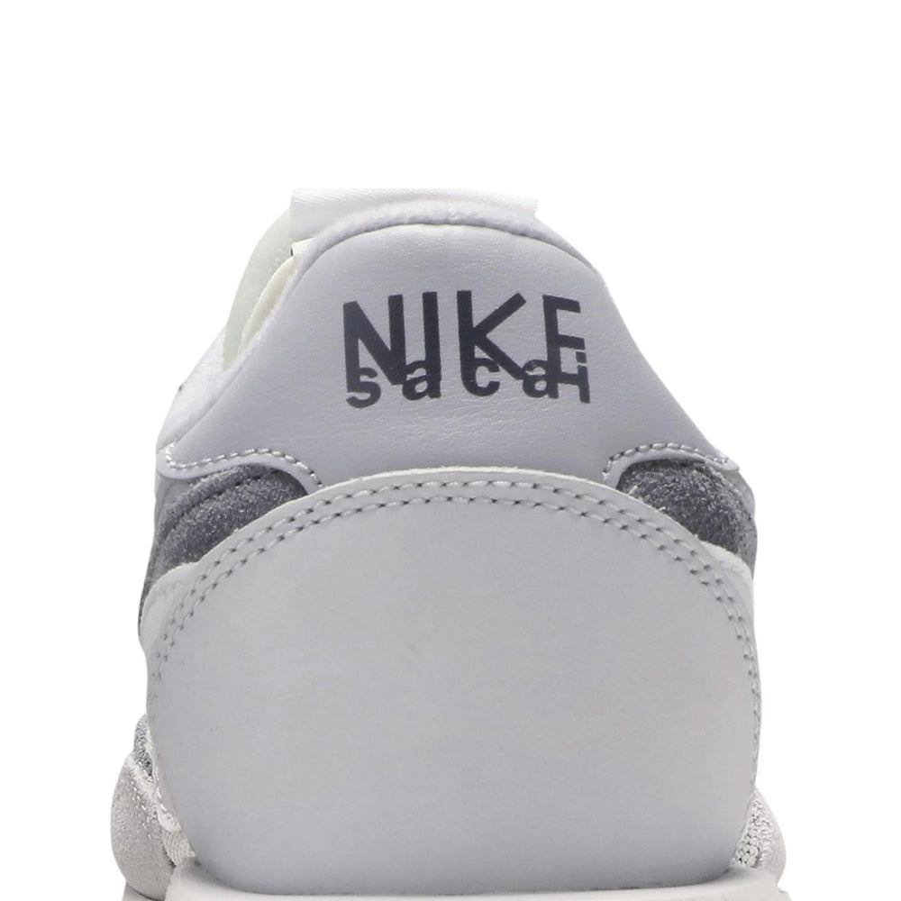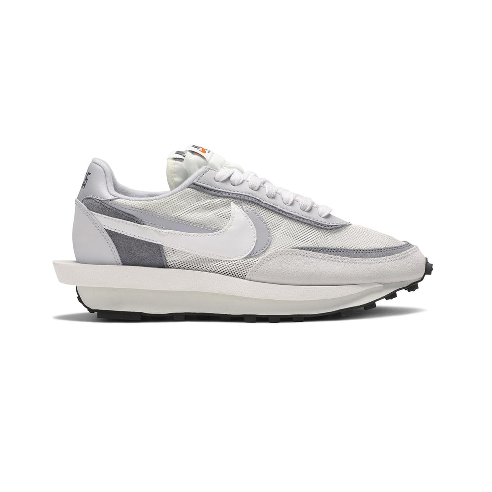 The Nike LD Waffle Sacai 'Summit White' features a meticulous blend of materials and layers, creating a dynamic and textured aesthetic. The upper showcases a combination of white mesh, leather, and suede, offering a sleek yet robust construction. This layered design is complemented by dual tongues, Swooshes, and laces, reinforcing Sacai's signature deconstructed style. The color palette remains understated with varying shades of white and grey, allowing the intricate details to take center stage. The midsole, a blend of two soles, extends slightly at the heel, providing not only a distinctive look but also enhanced comfort and support. The co-branded tongue tags and insole logos highlight the collaboration's exclusivity, making it a coveted piece for sneaker enthusiasts.