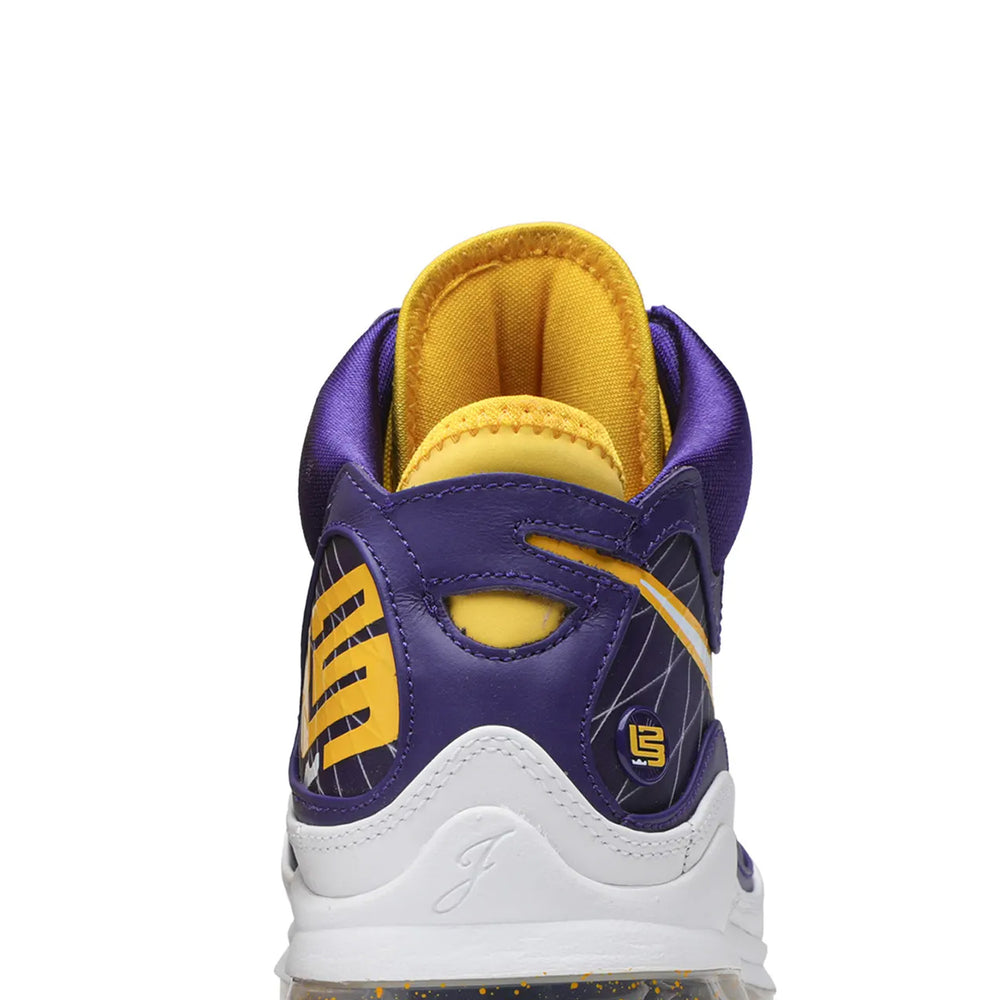 The Nike LeBron 7 'Media Day' (2020) stands as a testament to the seamless fusion of heritage basketball design and bold, statement-making aesthetics. Released in celebration of LeBron James' team allegiance, this highly coveted colorway merges vibrant Lakers-inspired hues with the iconic LeBron 7 silhouette, making it a must-have for fans and collectors alike. Overview The 'Media Day' edition features a mismatched design with alternating purple and yellow hues, a nod to the Los Angeles Lakers' signature colors. The sneaker's upper is crafted from Flywire panels and patent leather overlays, delivering both durability and a striking visual contrast. The midsole incorporates full-length Air Max cushioning for premium comfort and on-court performance. Detailing such as the embroidered Swooshes, LeBron's signature on the heel, and tonal laces complete the look. The translucent outsole adds a polished finish, ensuring the sneaker stands out both on and off the hardwood. Key Highlights • Lakers-Inspired Colorway: Bold mismatched purple and yellow uppers pay homage to LeBron James' team, celebrating his legacy. • High-Performance Design: Flywire panels and full-length Air Max cushioning deliver superior support and comfort for athletes and enthusiasts alike. • Iconic LeBron 7 Silhouette: Combines the heritage of the LeBron line with eye-catching aesthetics, making it a standout in sneaker collections.
