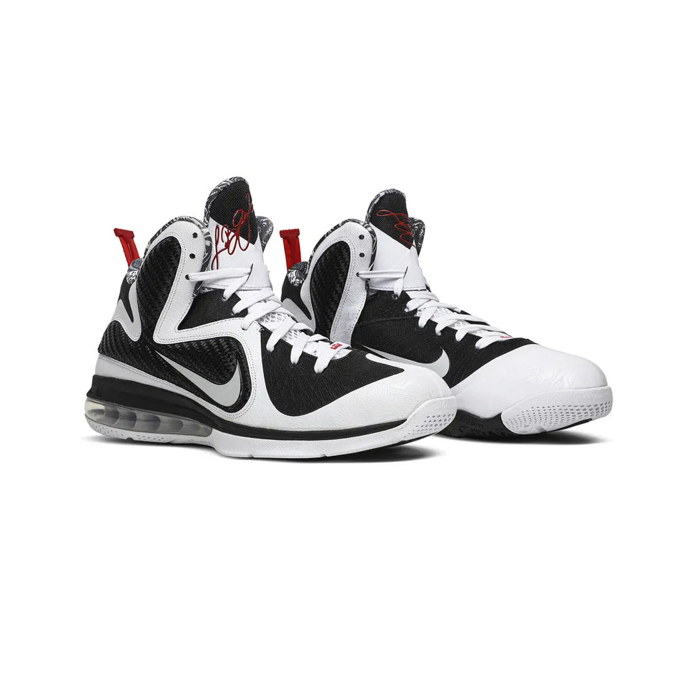 The Nike LeBron 9 'Freegums' (2011) is a bold and artistic entry in LeBron James’ iconic sneaker line, seamlessly blending performance innovation with striking visual storytelling. Designed in collaboration with Miami artist Alvaro "Freegums" Ilizarbe, this edition celebrates the city's vibrant culture and the artist's signature intricate patterns. Overview The Nike LeBron 9 'Freegums' features a unique black and white colorway, spotlighting Freegums' mesmerizing artwork across the inner lining and midsole trim. The sneaker's upper is constructed with a mix of hyperfuse and Flywire technologies, ensuring lightweight durability and superior lockdown fit. The intricate design reflects the dynamic spirit of Miami, showcasing Freegums' intricate line work that intertwines seamlessly with the shoe's high-performance DNA. A full-length Zoom Air unit in the forefoot and a Max Air 180 unit in the heel provide unmatched cushioning and responsiveness, making this sneaker a perfect blend of style and function. Key Highlights • Collaborative Artwork by Freegums: Features exclusive Miami-inspired illustrations by the renowned artist, creating a striking contrast in the black and white palette. • Advanced Nike Technologies: Includes hyperfuse construction and Flywire cables for enhanced support and durability without sacrificing lightweight comfort. • Elite Cushioning System: Combines a Zoom Air unit in the forefoot with a Max Air 180 unit in the heel for optimal shock absorption and responsiveness.