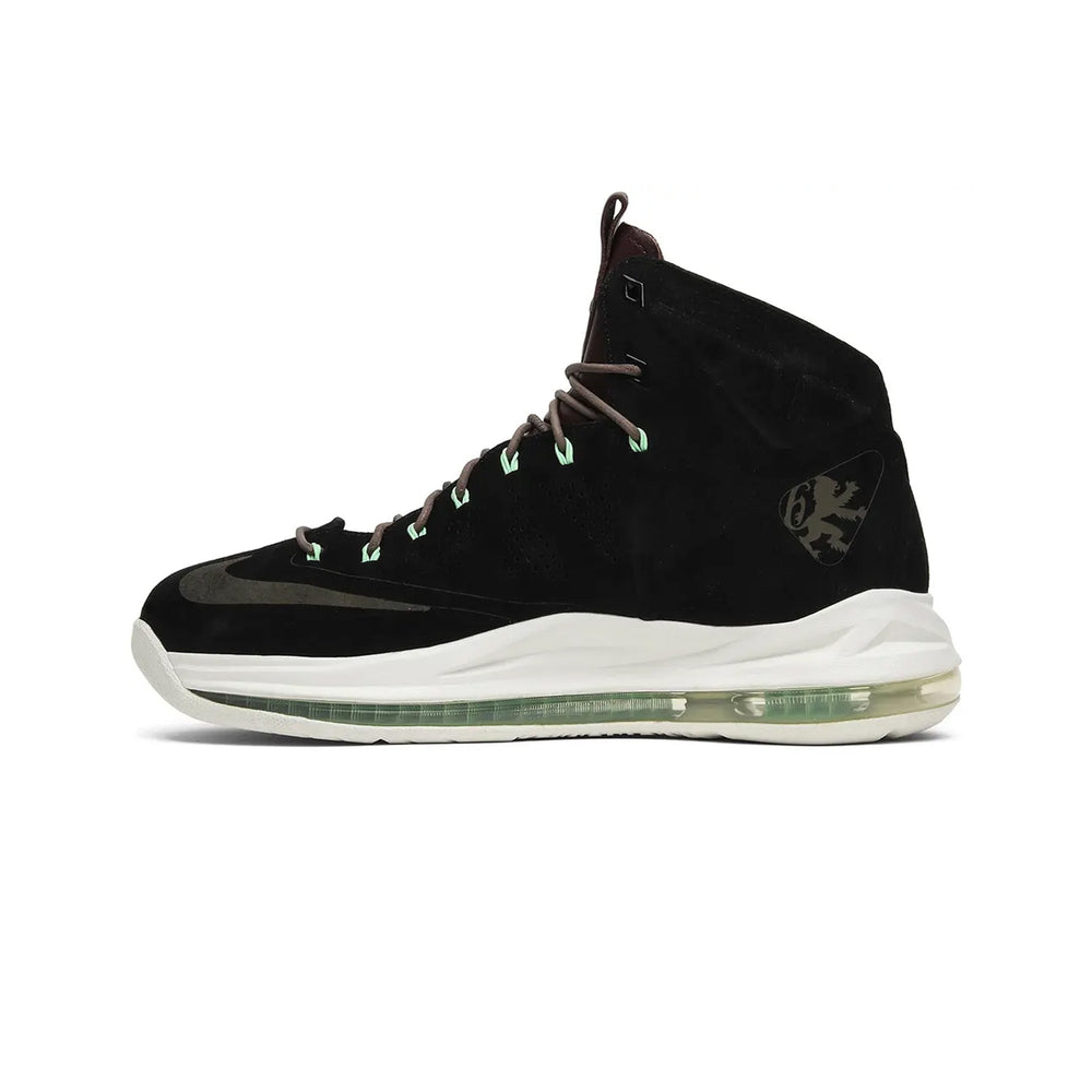 The Nike LeBron X EXT 'Black Suede' (2013) marked a pivotal moment in LeBron James' signature sneaker line, elevating performance basketball shoes into the realm of lifestyle fashion. This premium iteration combines bold aesthetics with luxury materials, making it a standout choice for collectors and sneaker enthusiasts alike. Overview Crafted with a rich black suede upper, the Nike LeBron X EXT 'Black Suede' transitions seamlessly from the court to the streets. Accents of vibrant University Red on the laces and tongue branding add a striking contrast, while the reflective 3M Swoosh delivers a modern edge. The shoe sits atop a black midsole with Nike Zoom Air cushioning for unmatched comfort and responsiveness. Completing the design is a semi-translucent outsole, providing a sleek finish and superior traction. As part of the LeBron X EXT series, this release showcases a fusion of premium craftsmanship and cutting-edge innovation, making it a timeless addition to any sneaker rotation. Key Highlights • Premium Black Suede Upper: Elevates the LeBron X silhouette with luxurious materials, ensuring a sophisticated yet bold look. • Vibrant University Red Accents: The striking red laces and tongue detailing add a pop of color, making the design truly eye-catching. • 3M Reflective Swoosh: Enhances visibility and adds a dynamic, contemporary flair to the classic design.