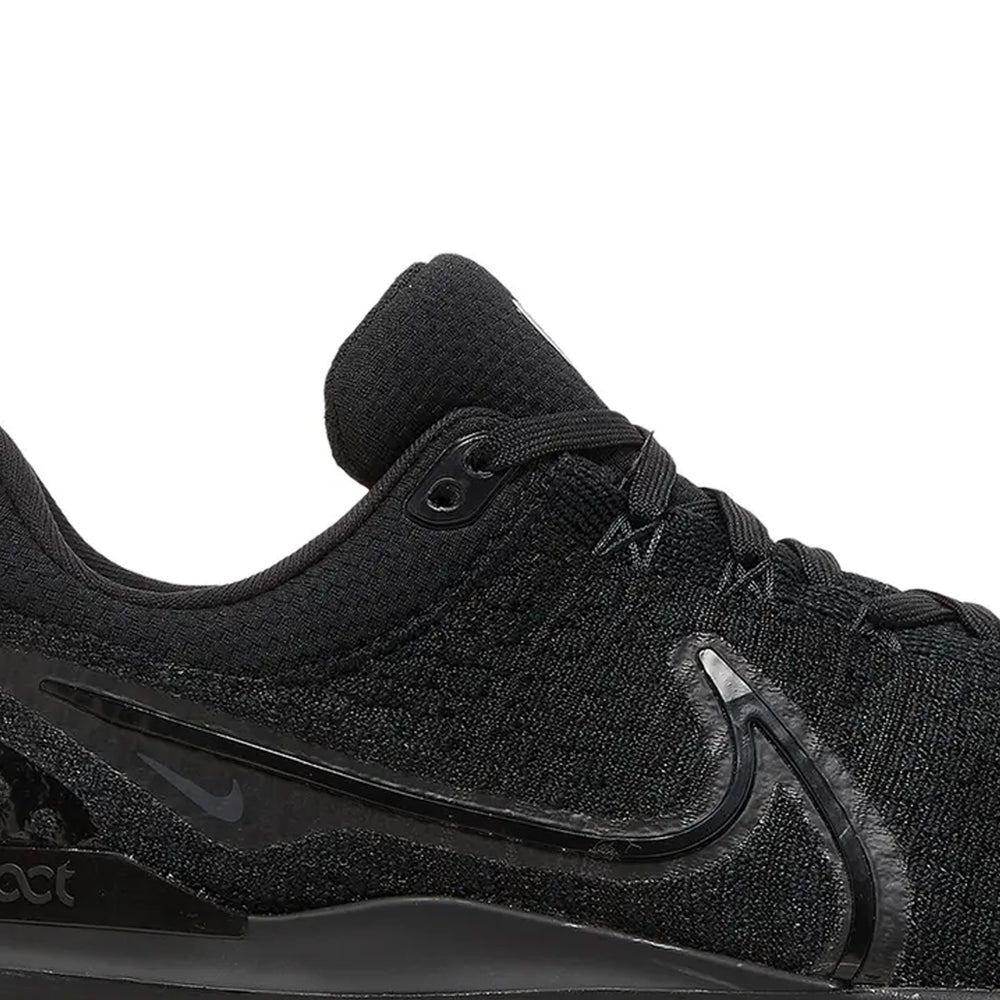 The Nike React Infinity Run Flyknit 3 'Triple Black' showcases an engineered Flyknit upper, providing a sock-like fit that supports every stride while offering breathability. The midsole features Nike’s React foam, known for its lightweight, responsive cushioning, designed to reduce the risk of injury and offer a smooth, stable ride for long-distance runs. The sleek, black-on-black color scheme gives the shoe a modern and minimalist appeal, with subtle branding details like the Swoosh on the side and the Nike React logo on the heel tab. A rubber outsole with strategically placed traction points offers superior durability and grip, whether you're on the road or hitting the pavement.