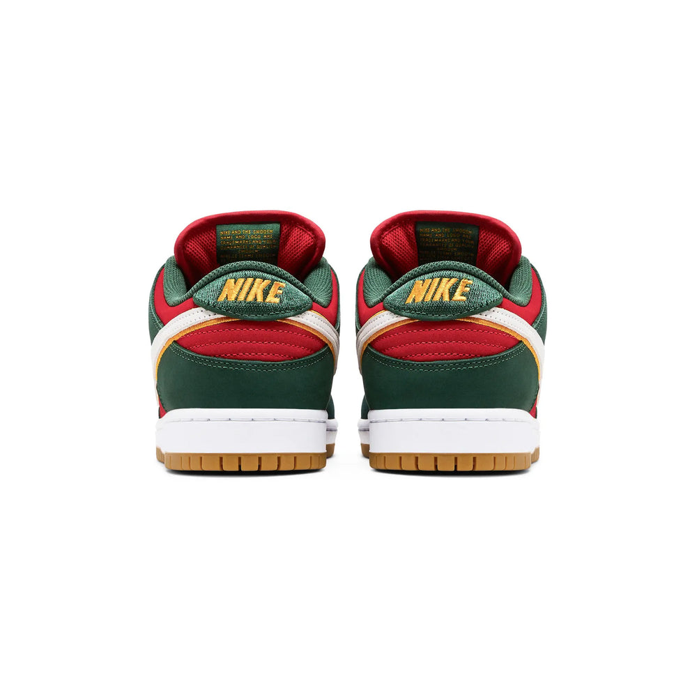 The Nike SB Dunk Low Pro PRM 'Seattle Supersonics' (2024) pays tribute to one of the most iconic franchises in NBA history, capturing the energy and heritage of the Seattle SuperSonics through a premium skateboarding silhouette. Designed to resonate with both sneaker enthusiasts and basketball fans, this colorway revives the team’s legacy while aligning with Nike SB’s ongoing commitment to storytelling and performance-driven aesthetics. Overview Dressed in a palette that echoes the original SuperSonics team colors, the sneaker features a white leather base with green suede overlays and bold yellow accents throughout. The classic Dunk Low profile is elevated with premium materials and thoughtful detailing, including a perforated toe box for breathability and a Zoom Air unit in the insole for responsive cushioning. The green Swoosh, golden yellow outsole, and embroidered Nike SB branding on the tongue and heel reinforce the Sonics-inspired theme. Released as a Premium (PRM) edition under Nike SB, this pair exemplifies the brand’s ability to merge skate functionality with culturally resonant design cues. The colorway’s release arrives amid renewed interest in retro basketball aesthetics, making it both a nostalgic nod and a timely addition to any sneaker rotation. Key Highlights • Seattle SuperSonics-Inspired Colorway: Features a white leather base with green suede overlays and yellow detailing, directly referencing the NBA team’s original palette. • Premium SB Dunk Low Construction: Includes Zoom Air cushioning in the insole, a padded tongue, and durable materials suited for both skating and lifestyle wear. • Modern Tribute to a Basketball Legacy: Celebrates the heritage of the Seattle SuperSonics, appealing to both fans of the sport and collectors of culturally inspired Nike SB releases.