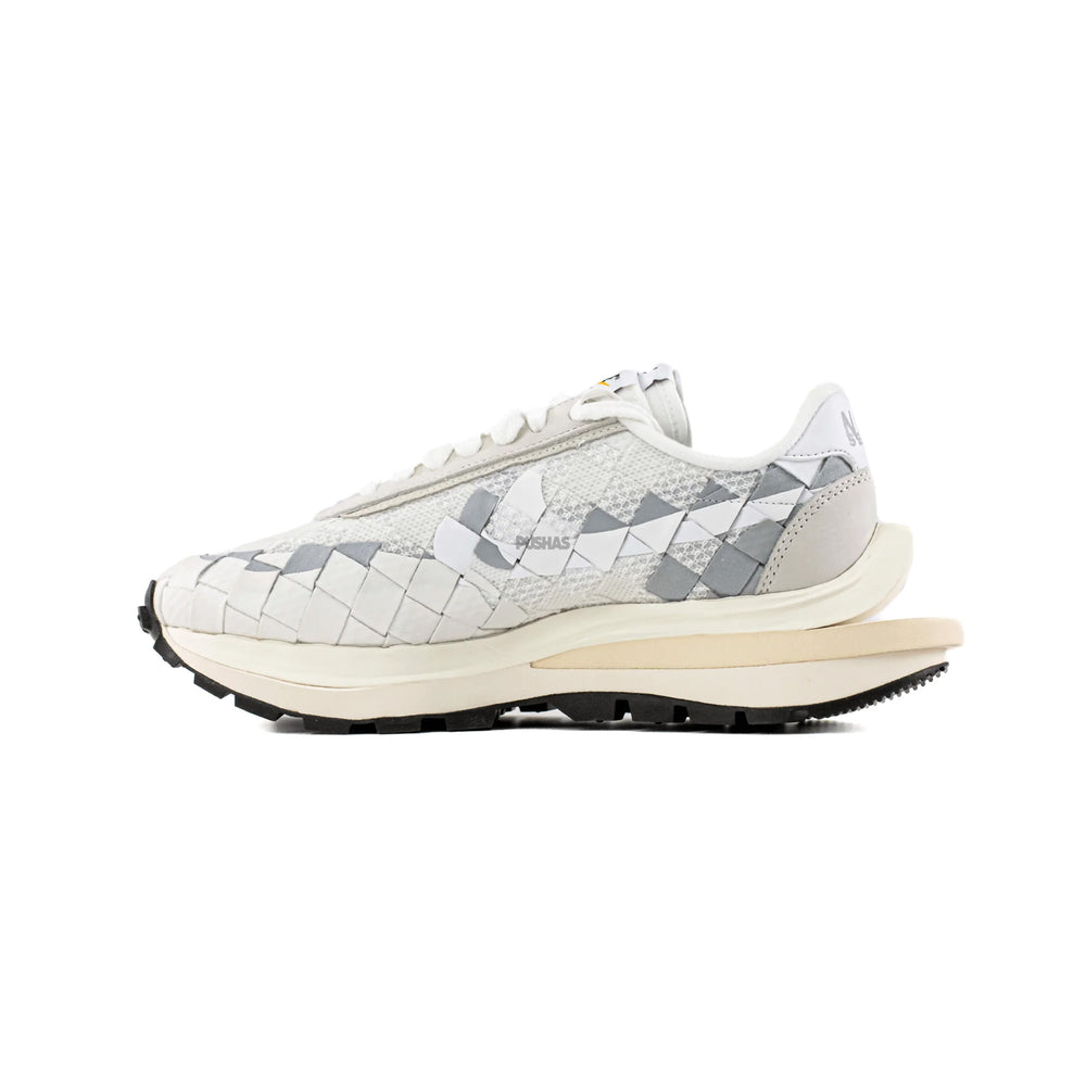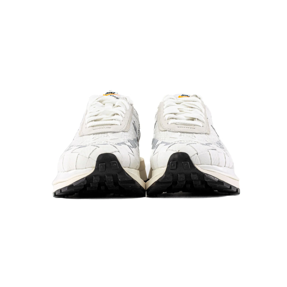 The Nike VaporWaffle Woven x Sacai x Jean Paul Gaultier 'White' (2023) epitomizes a masterful fusion of avant-garde fashion and high-performance athletic design. This collaborative effort between Nike, Sacai, and Jean Paul Gaultier presents an audacious reinterpretation of the classic Nike VaporWaffle, reflecting the design prowess of these iconic brands.