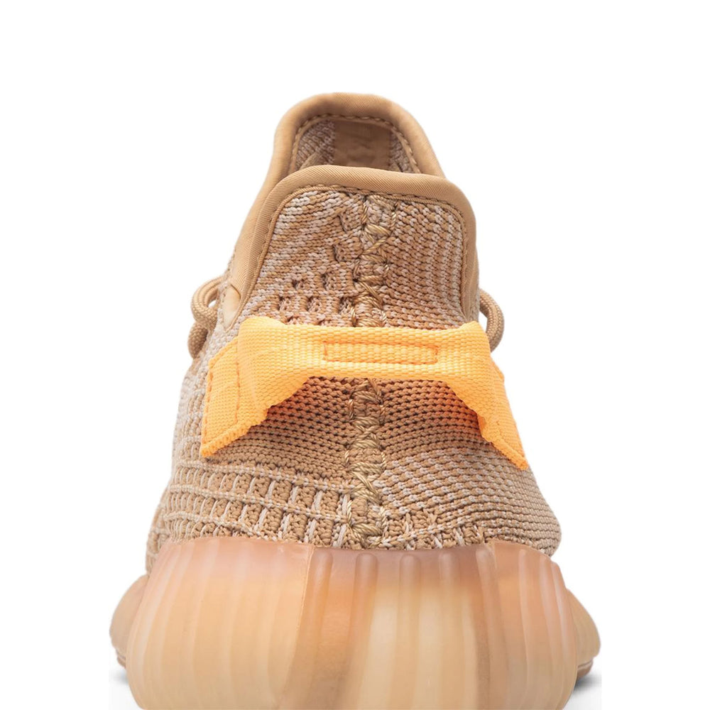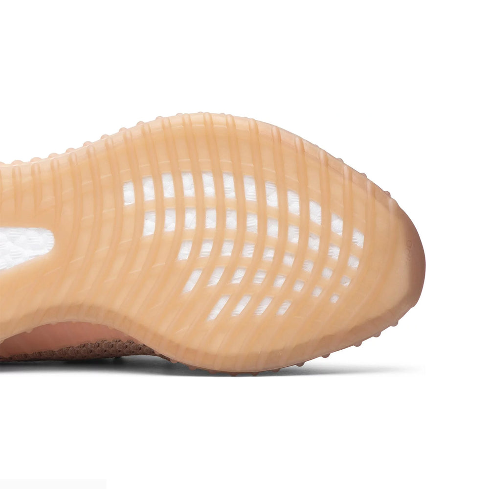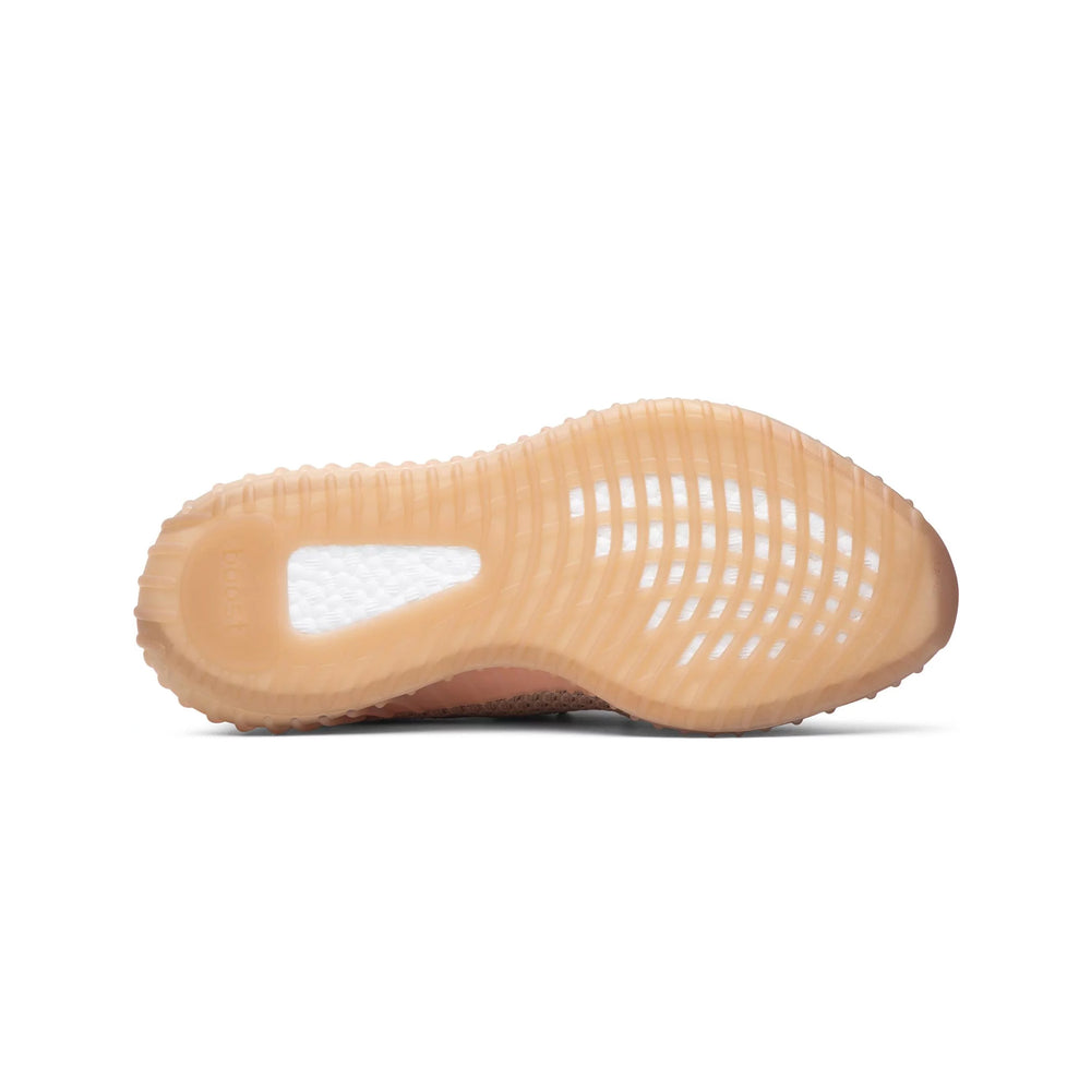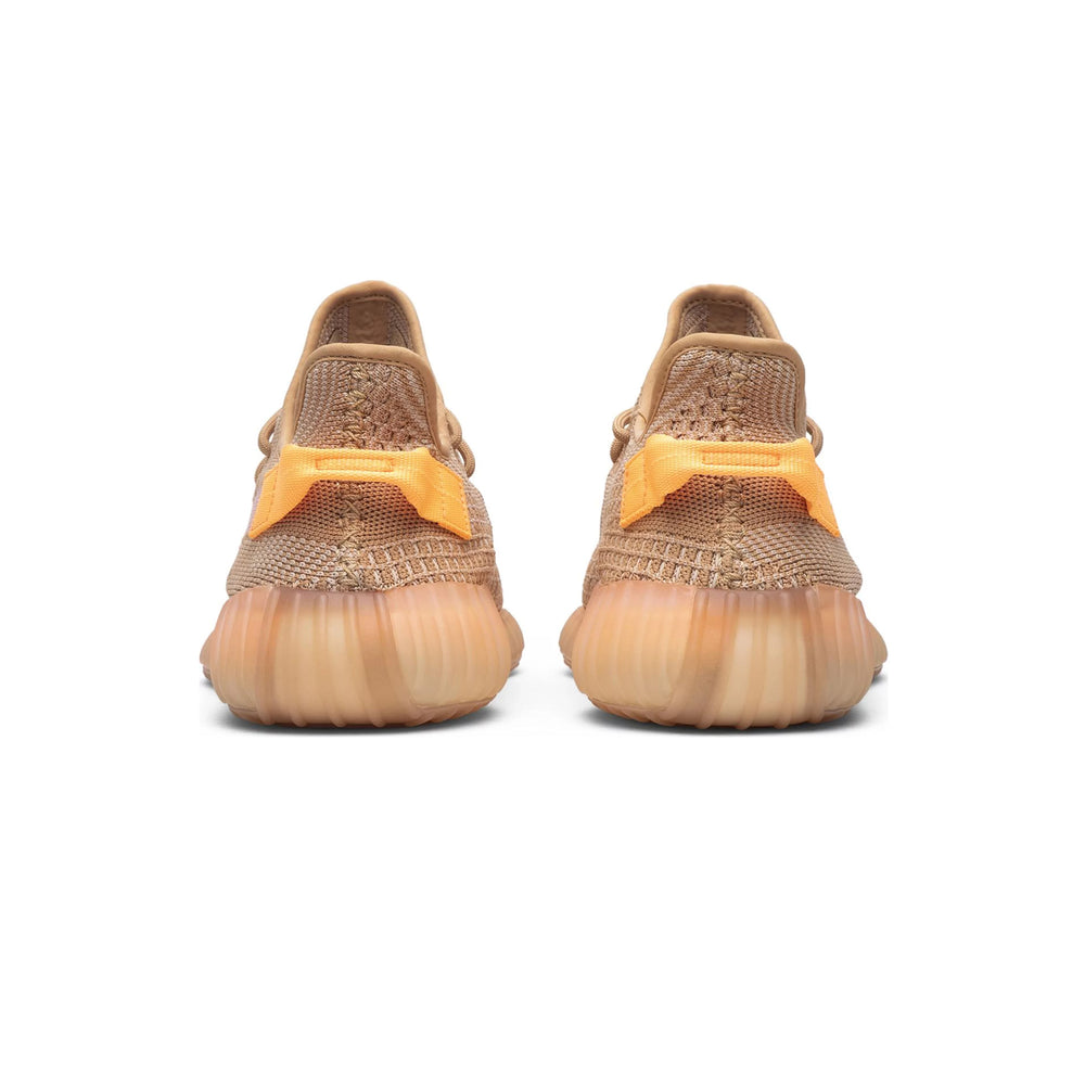 The clay top, translucent stripe, clay midsole, and clay sole of this Yeezy Boost 350 are all accented with orange.