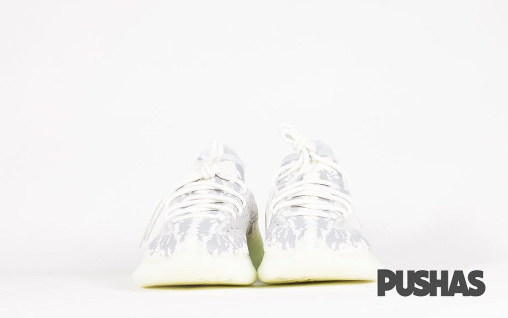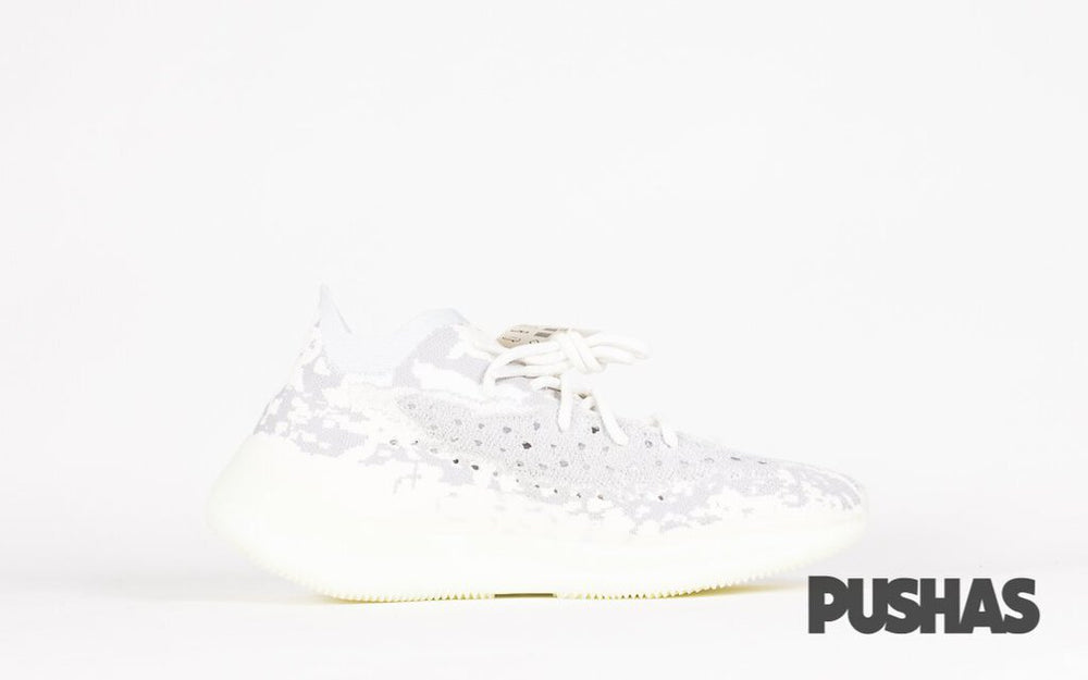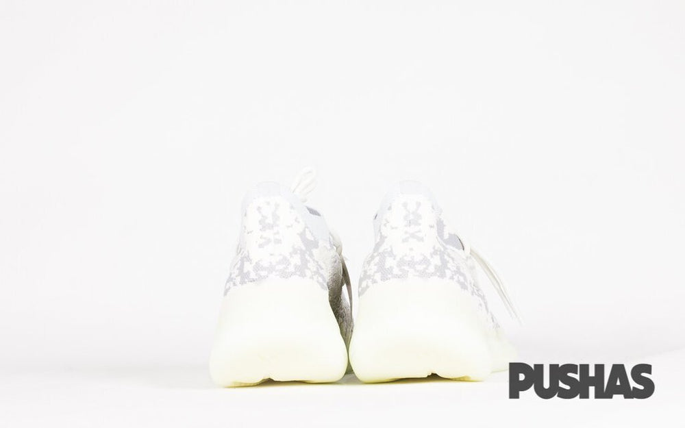 The adidas Yeezy Boost 380 "Alien," which updates Kanye West's iconic design, stands out by going beyond the futuristic nature of its forerunner. Its streamlined cloth top is designed with reflectivity for added depth and a textured weave pattern that resembles an otherworldly landscape. On the higher-cut bootie, a similar lacing system snakes up the boot. A milky translucent rubber covering the Boost tech is also present on the outsole.