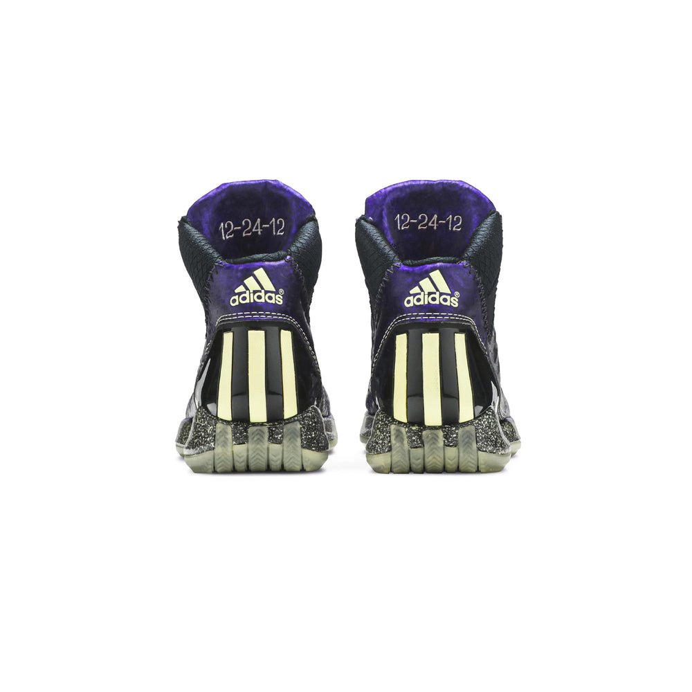 The Adidas D.Rose 3.0 'Nightmare Before Christmas' features a striking purple synthetic leather upper, reminiscent of the eerie, enchanting atmosphere of Halloween Town. The iridescent finish glistens under various lighting conditions, mimicking the surreal landscape of the movie. Complemented by black accents and a glow-in-the-dark outsole, this sneaker captures the essence of the film's nocturnal charm. The tongue showcases a spider web design, adding a touch of gothic flair, while the insole includes a haunting graphic of Jack Skellington, further solidifying the thematic tribute.