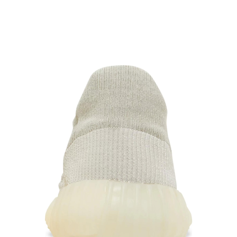 The Yeezy 350 V2 CMPCT 'Slate Bone' features a reimagined Primeknit upper, designed for enhanced flexibility and snug comfort. The updated structure showcases intricate woven patterns, offering breathability and a dynamic look. Its elasticated collar and sock-like construction ensure an adaptive fit, while the absence of traditional laces adds to its sleek appearance. A full-length BOOST midsole, encased in a semi-translucent rubber outsole, delivers superior cushioning and energy return, making the shoe ideal for extended wear. The neutral "Slate Bone" colorway accentuates the minimalist design, ensuring versatility in styling.
