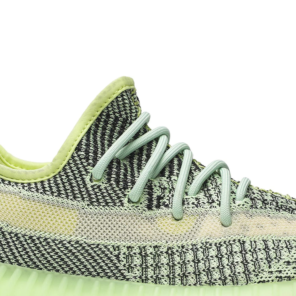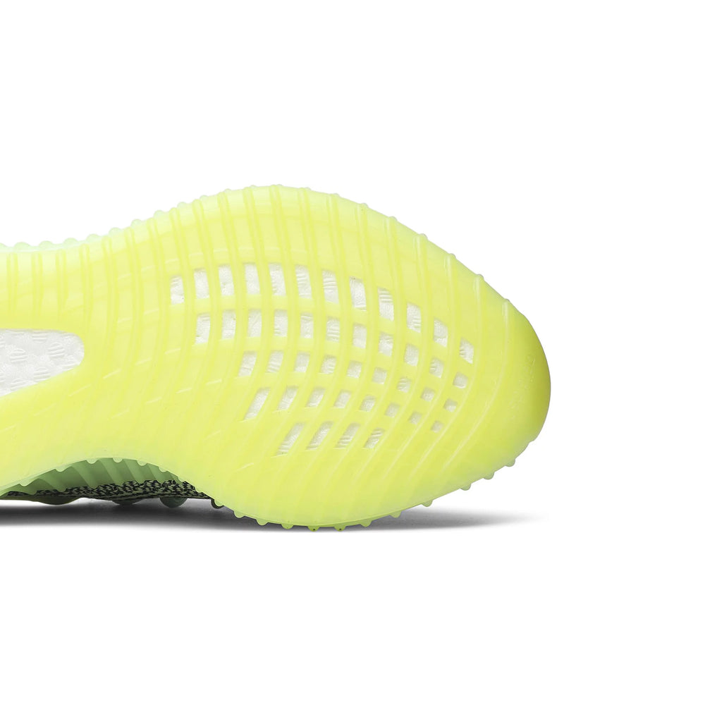 • Glow-in-the-Dark Design: The neon green and black knit upper glows in low-light conditions, showcasing the Yeezy line’s signature flair for innovation.