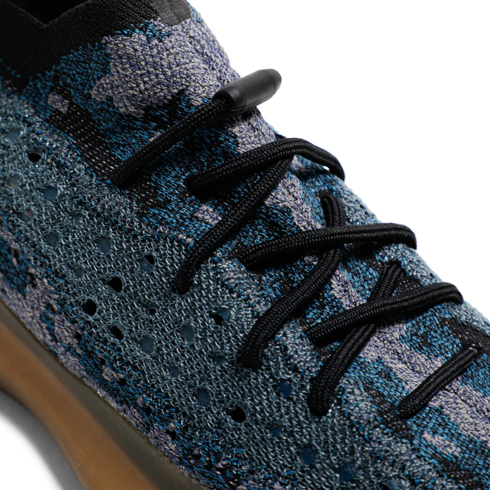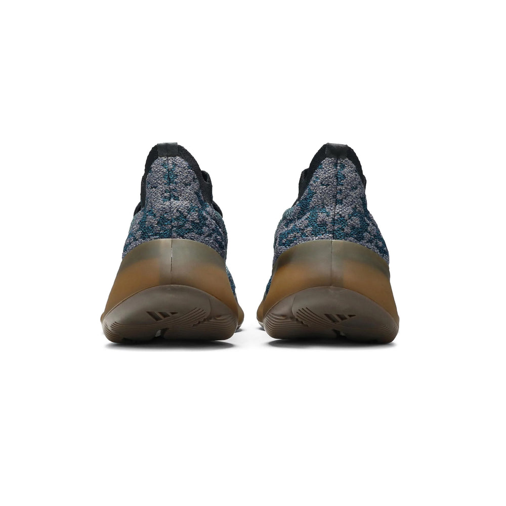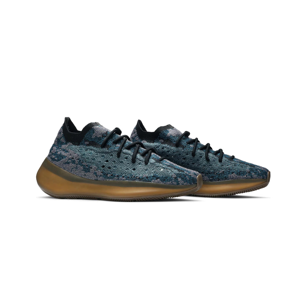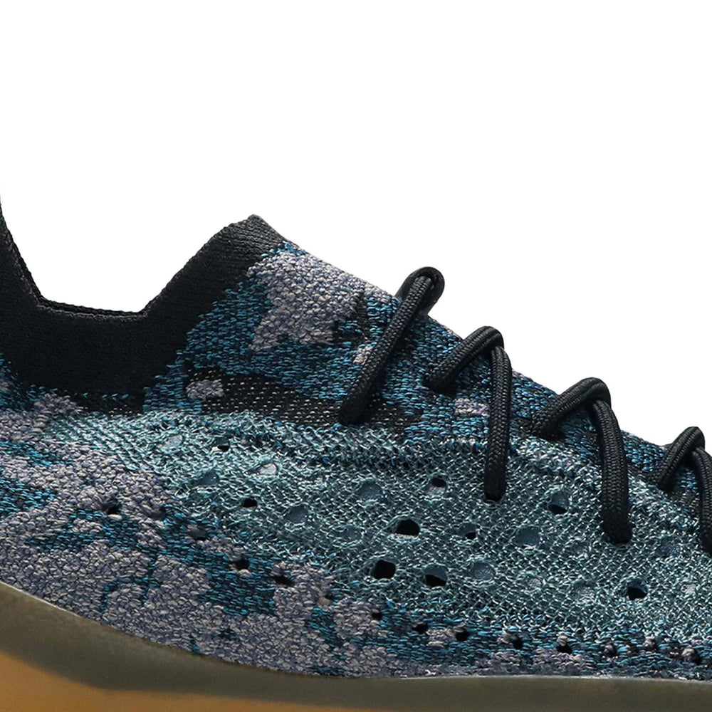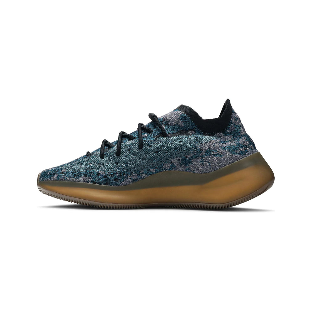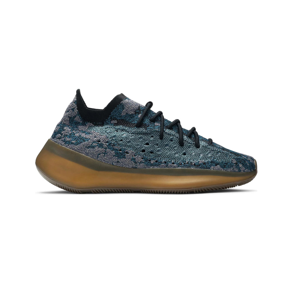 The Yeezy Boost 380 'Covellite' showcases a distinctive "Covellite" colorway, a rich blue-gray that seamlessly transitions into a subdued, dark green, creating a dynamic visual effect. The sneaker features a Primeknit upper with a camouflage-inspired pattern that provides both style and breathability. The integrated Boost midsole delivers exceptional comfort and responsiveness, ensuring a cushioned stride. The shoe's translucent outsole complements its futuristic design, enhancing grip and durability. Notable elements include the minimalist lacing system and a sleek, contoured silhouette that aligns with Yeezy’s signature aesthetic. The 'Covellite' edition stands out for its blend of utilitarian charm and avant-garde design, embodying the spirit of modern footwear innovation.