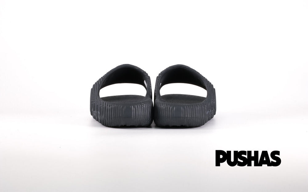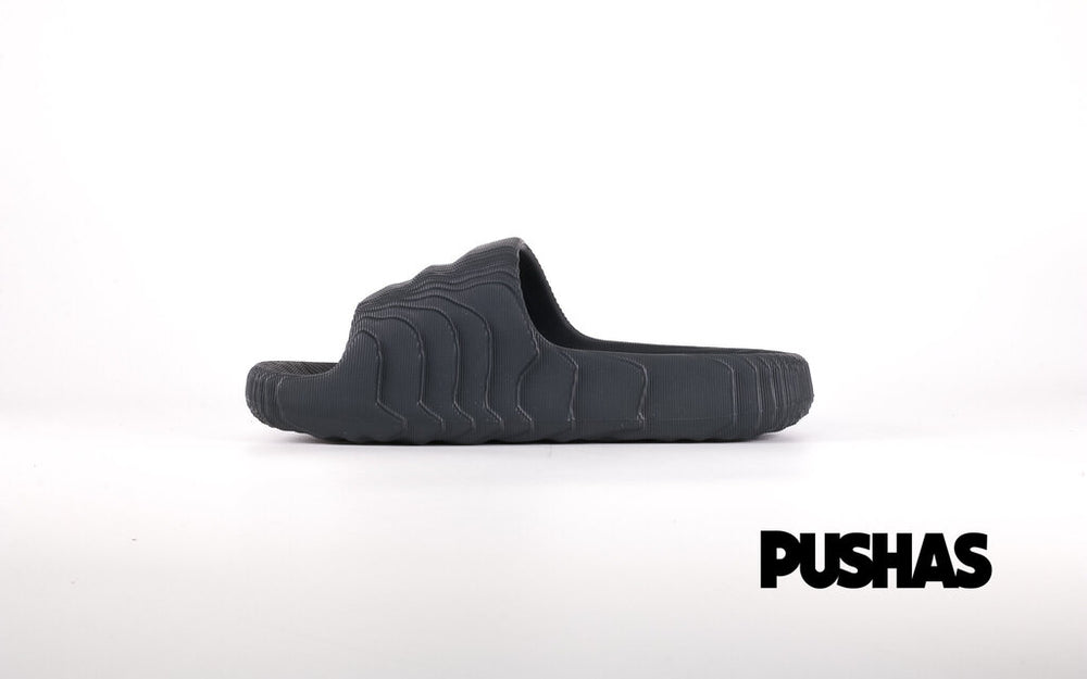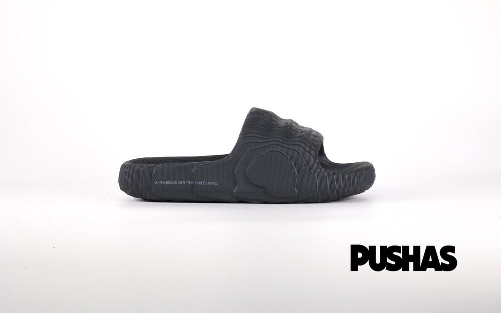 Buy the Adidas Adilette 22 Slides 'Carbon Black' (2022) are open-toe sandals that feature a rubber outsole with synthetic inner and outer lining. The sandals have a 3D topographical design on the outside and a contoured footbed.