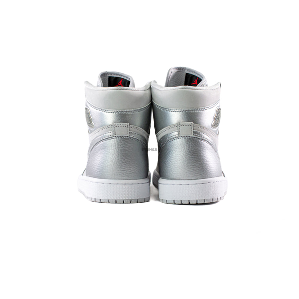 Crafted with meticulous attention to detail, the Air Jordan 1 'CO Japan Tokyo' features a sleek black leather upper accented by contrasting metallic silver detailing on the Swoosh, ankle collar, and heel. The use of metallic hues adds a touch of sophistication while staying true to the sneaker's Japanese inspiration.