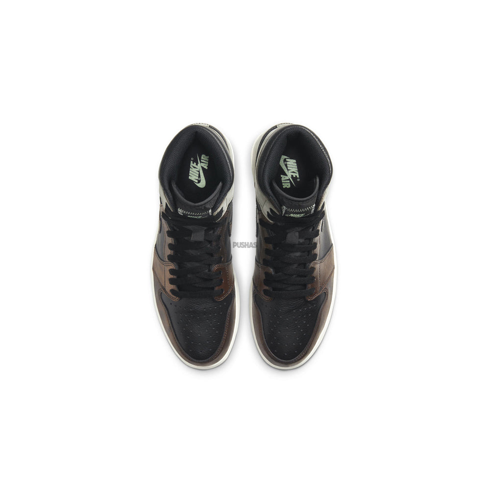 The Air Jordan 1 Retro High 'Light Army Rust Shadow Patina' showcases a premium construction featuring a sophisticated mix of materials and colors. The upper combines supple leather overlays in 'Light Army' and 'Rust Shadow' tones, complemented by a distressed patina finish that lends a distinctive, weathered appearance. This intentional design choice imbues each pair with a sense of individuality and character, ensuring that no two shoes are exactly alike.