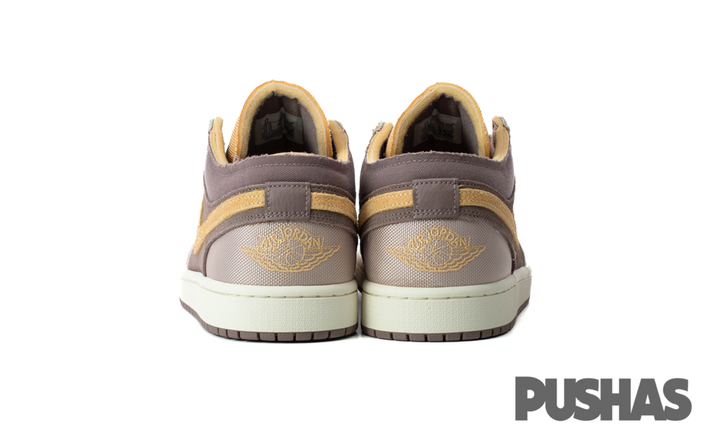 Crafted with meticulous attention to detail, the Air Jordan 1 Low SE Craft 'Taupe Haze' showcases a premium leather and suede construction. The base of the sneaker features a rich "Taupe Haze" hue, complemented by intricate stitching and layered textile elements that add depth and dimension. Contrasting the muted tones, the Swooshes and heel tabs sport a darker brown, enhancing the sneaker’s visual appeal. The design is completed with a clean white midsole and a durable rubber outsole, ensuring both style and functionality.