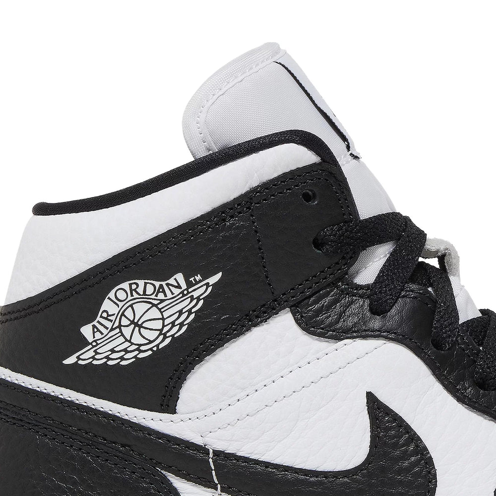 Crafted with a premium blend of leather and textile, this Air Jordan 1 iteration ensures both durability and comfort for everyday wear. The sleek black leather base is complemented by crisp white overlays, creating a bold contrast that underscores the sneaker's dynamic design. The iconic Nike Swoosh adorns the lateral and medial sides, while subtle branding details, such as the embossed Wings logo on the collar, add a touch of understated elegance. With its versatile colorway and refined construction, the Air Jordan 1 Mid Split 'Black White' Women's (2022) effortlessly transitions from the courts to the streets, making it a coveted addition to any sneaker rotation.