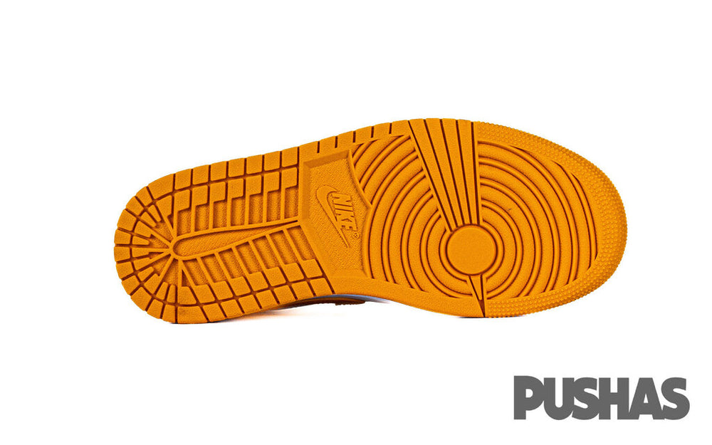 The Women's Air Jordan 1 Mid "University Gold" gives the timeless silhouette a summer-ready appearance. This daring version has a two-tone leather color pattern made up of White and University Gold. While the gold color is used for the Jordan Wings emblem, Swooshes, tongue branding, and rubber outsole, the shoe also has a white nylon tongue, laces, and midsole.