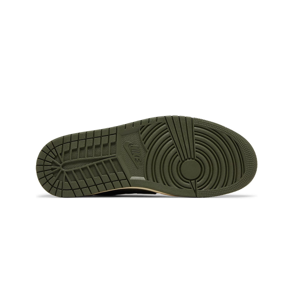 Crafted with a premium suede and leather upper, the Air Jordan 1 Retro Low OG SP Travis Scott 'Medium Olive' features a “Sail” midsole and dark olive green accents that contrast elegantly against a black base. Travis Scott’s hallmark reverse Swoosh appears in “Medium Olive” on the lateral side, while traditional Swooshes sit on the medial. The design is further enhanced by red branding details, including the embroidered Cactus Jack logo on the heel and Nike Air branding on the tongue. The shoe is finished with a durable rubber outsole, offering both style and performance, making it a versatile choice for both collectors and casual wearers.
