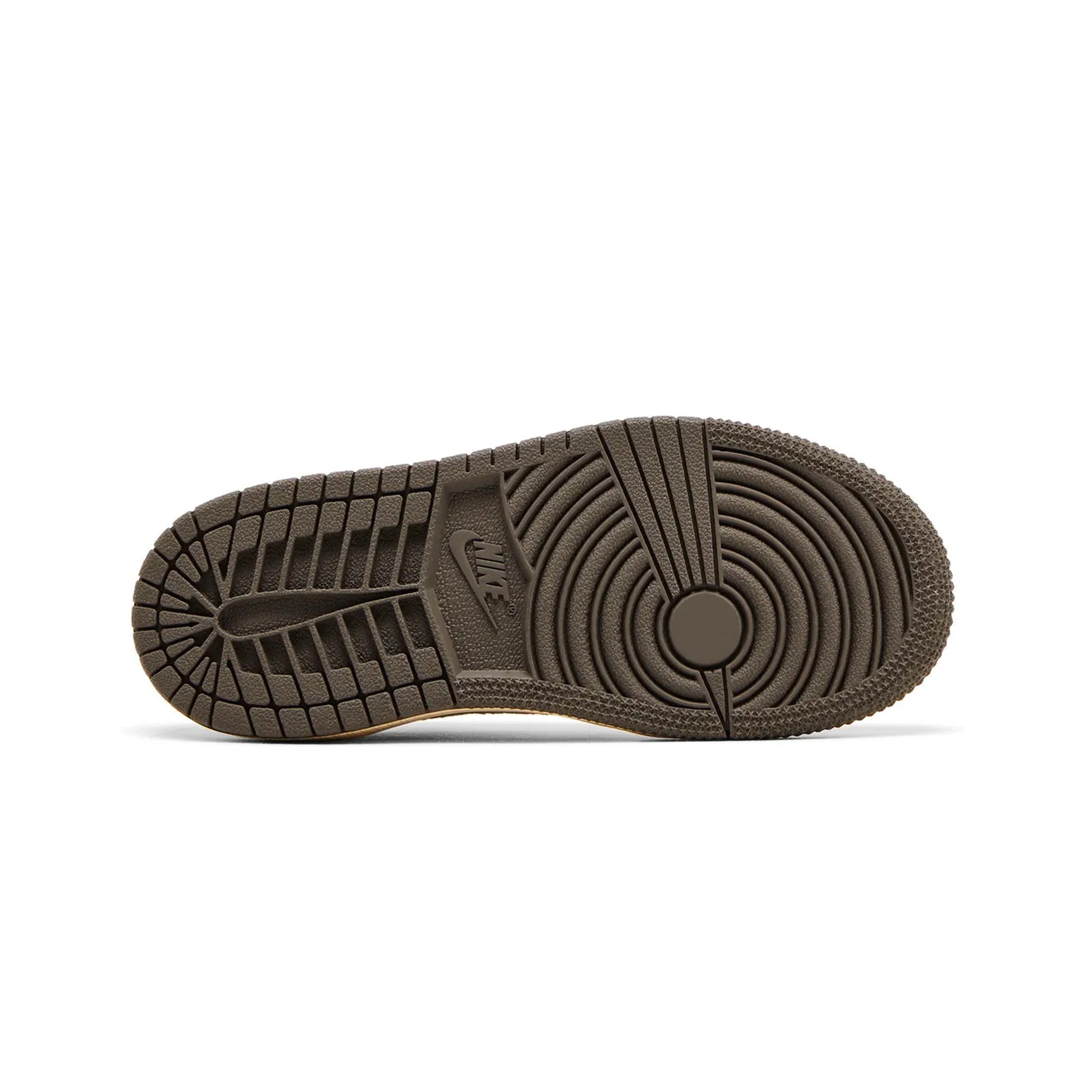The Air Jordan 1 Retro Low OG SP Travis Scott 'Reverse Mocha' PS (2022) reimagines the iconic low-top silhouette with Scott’s signature design elements, blending premium materials with a distinctive color scheme. This preschool-sized iteration delivers the same sought-after aesthetic as its adult counterpart, making it a must-have for young sneaker enthusiasts.