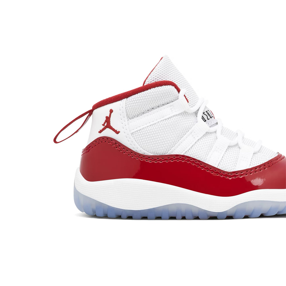 Classic Air Jordan 11 Aesthetic: The striking "Cherry" colorway, blending white and Gym Red, pays homage to the beloved original design while making it suitable for toddlers.