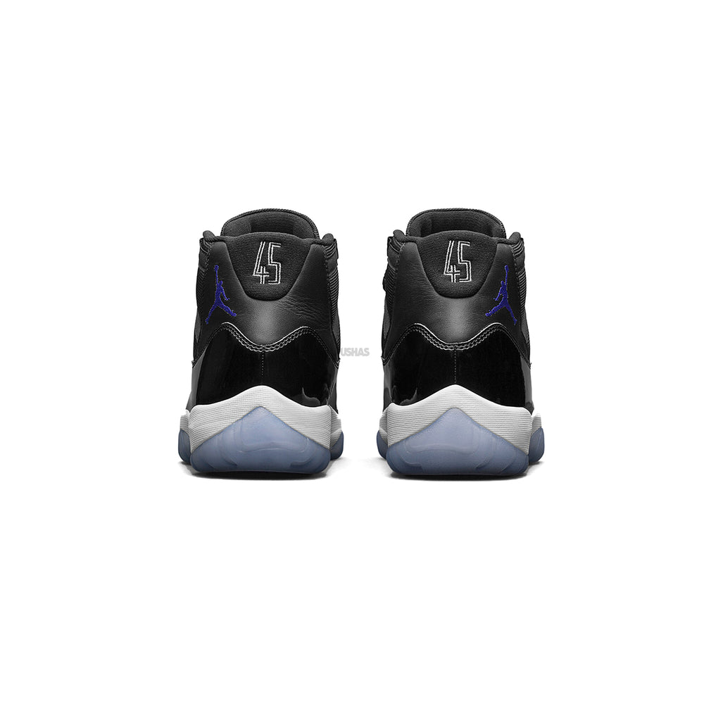 From its patent leather accents to its signature icy blue outsole, every element of this sneaker exudes sophistication and style. The timeless black colorway, punctuated by hits of Concord purple and white, ensures that the Air Jordan 11 Retro 'Space Jam' remains a standout in any collection. Whether you're a die-hard sneaker enthusiast or a casual fan, these kicks are sure to turn heads and spark conversation wherever you go.