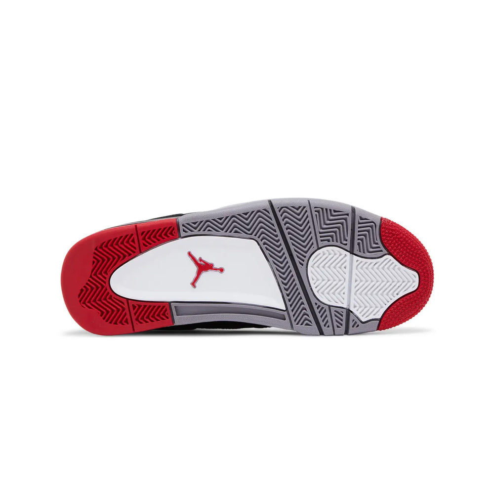 The Air Jordan 4 Retro 'Black Cement' (2012) reintroduces one of the most iconic colorways in sneaker history, blending timeless design with unmatched craftsmanship. This celebrated release pays homage to Tinker Hatfield's original 1989 creation while solidifying its place as a staple in the Air Jordan lineup. Overview Crafted with a premium black nubuck upper, the Air Jordan 4 Retro 'Black Cement' (2012) exudes understated elegance and durability. The sneaker features cement grey accents on the signature wing eyelets and midsole, complemented by bold splashes of "Fire Red" on the tongue, outsole, and inner lining. The unmistakable "Jumpman" logo takes center stage on the tongue and heel, replacing the original "Nike Air" branding. A visible Air unit in the heel ensures modern comfort while retaining the silhouette's retro aesthetic. Perfectly balancing style and performance, this iteration of the Air Jordan 4 remains a grail for collectors and basketball enthusiasts alike. Key Highlights • Timeless 'Black Cement' Colorway: Features a sleek black nubuck upper contrasted by cement grey and fiery red accents, staying true to the OG design. • Durable and Comfortable Construction: Premium materials and a visible Air unit deliver both longevity and all-day wearability. • Iconic Air Jordan 4 Silhouette: Designed by Tinker Hatfield, this retro release preserves the heritage of one of the most beloved Air Jordans of all time.