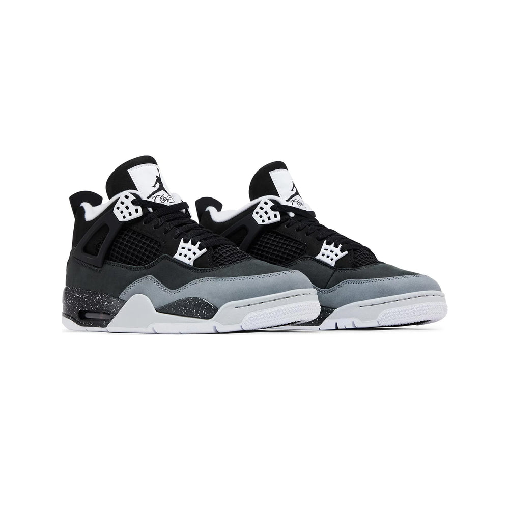 The Air Jordan 4 Retro 'Fear' features a sophisticated blend of dark grey, black, and white hues, giving the sneaker an edgy and versatile appeal. The upper is crafted from premium suede, offering a luxurious texture that balances both style and durability. Black and dark grey hues dominate the upper, with subtle white speckling on the midsole and heel, creating a striking visual contrast. Mesh netting on the quarter panels and tongue adds breathable functionality, while classic Air Jordan detailing, such as the visible Air unit in the heel, maintains the heritage appeal. The interior showcases a plush black lining, enhancing comfort while providing a refined look. With a tribute to Michael Jordan’s fearless mindset, this release reaffirms the cultural significance of the Air Jordan 4, resonating with both collectors and casual wearers alike.