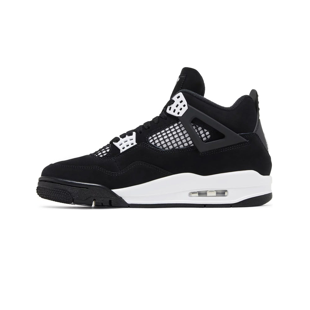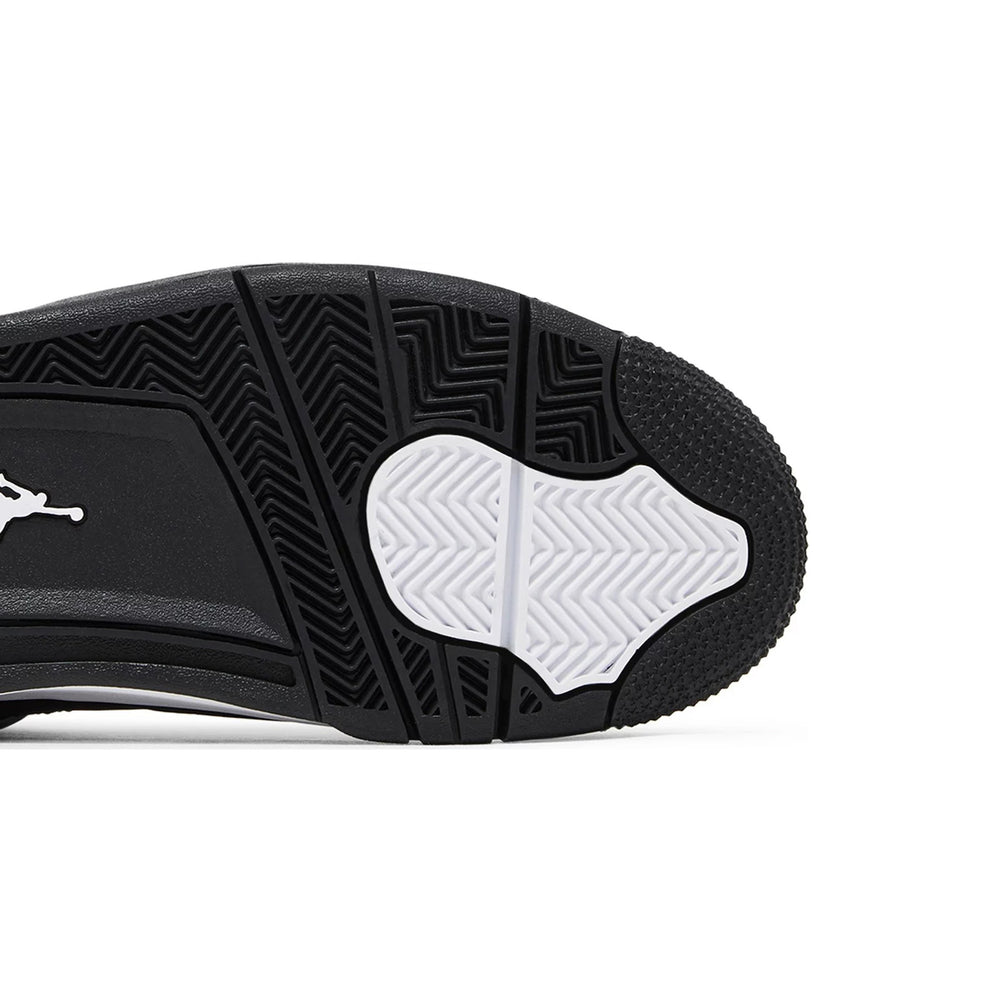 The Air Jordan 4 Retro 'White Thunder' (2024) features a premium white leather upper that contrasts with bold black accents, creating a striking visual dynamic reminiscent of the original 'Thunder' series. The shoe's signature mesh panels, blacked-out eyelets, and black midsole provide a clean, sleek look, while yellow details on the tongue, outsole, and Jumpman branding offer a pop of color, paying homage to its predecessor. The sturdy rubber outsole ensures traction and durability, making it as functional on the court as it is stylish off of it. Combining a refined color palette with the iconic Jordan silhouette, the 'White Thunder' is poised to be a must-have for collectors and casual wearers alike.