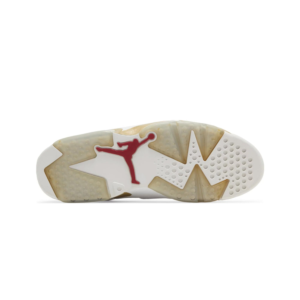 Crafted with meticulous attention to detail, the Air Jordan 6 in the 'Golden Moments Pack' showcases a pristine white leather upper contrasted by opulent gold accents. This sophisticated palette not only exudes luxury but also pays homage to Jordan's Olympic glory. The Air Jordan 7 complements this with a sleek black nubuck upper, also highlighted by gold detailing, embodying a sense of triumph and resilience. Both pairs are designed with premium materials, ensuring durability and a high-end feel.