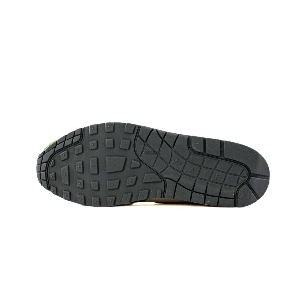 The Air Max 1 SH 'Treeline' features a striking "Treeline" green suede upper, which evokes the lushness of a verdant forest. This premium material is contrasted by "Black" mesh panels, enhancing both durability and breathability. The iconic Air Max cushioning is highlighted with a bold "White" midsole, providing both comfort and a visual balance to the deep green hues of the upper. Unique touches include the speckled detailing on the outsole, reminiscent of forest terrain, and the reflective Swoosh branding, which adds a modern twist to the classic design. The shoe’s subtle yet impactful color palette and materials are a testament to Nike’s dedication to blending style with environmental consciousness.