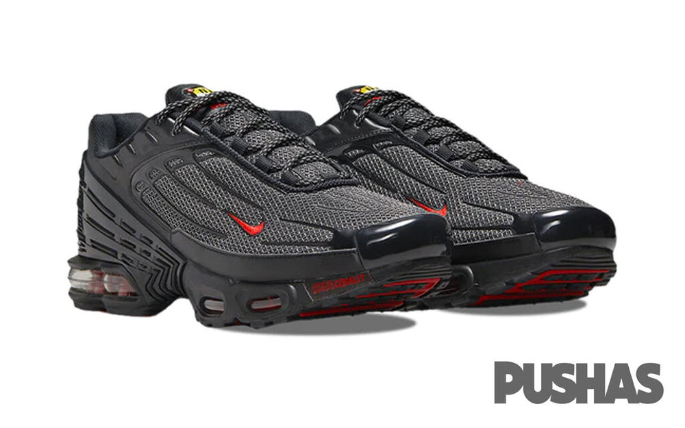 The Nike Air Max Plus 3 'Black Reflective Silver University Red' (2022) marks a bold evolution in the Air Max lineage, blending innovative design with high-performance technology. This striking iteration is engineered to turn heads and perform under the most demanding conditions, making it a must-have for sneaker enthusiasts and athletes alike.