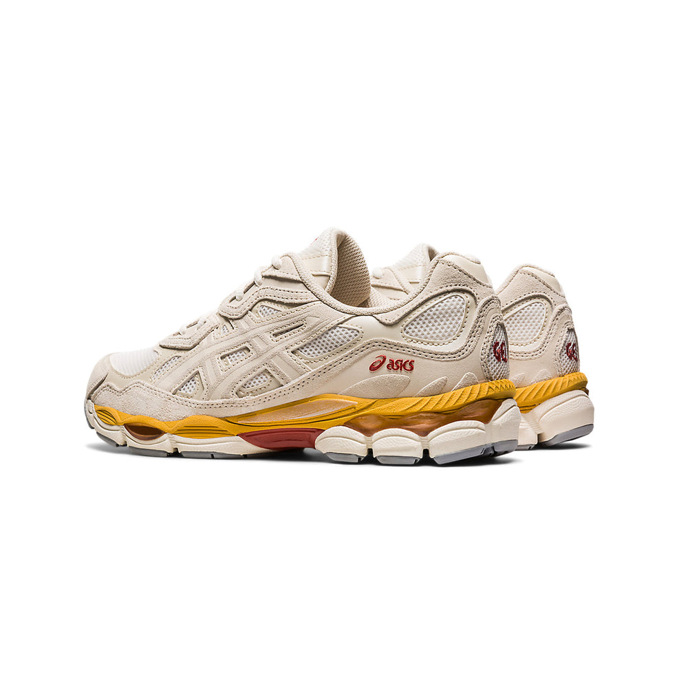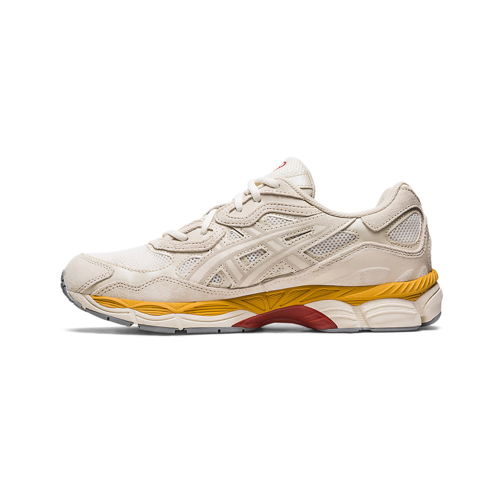 The ASICS Gel-NYC 'Cream Oatmeal' (2023) marks a pinnacle in the evolution of athletic footwear, marrying cutting-edge technology with timeless style. Crafted with meticulous attention to detail, this sneaker boasts a sleek design that seamlessly blends performance and fashion-forward aesthetics. The upper features a luxurious cream-colored mesh material, providing breathability and flexibility for maximum comfort during workouts or everyday wear. Complementing this base are oatmeal-colored overlays, strategically placed to enhance durability and support.