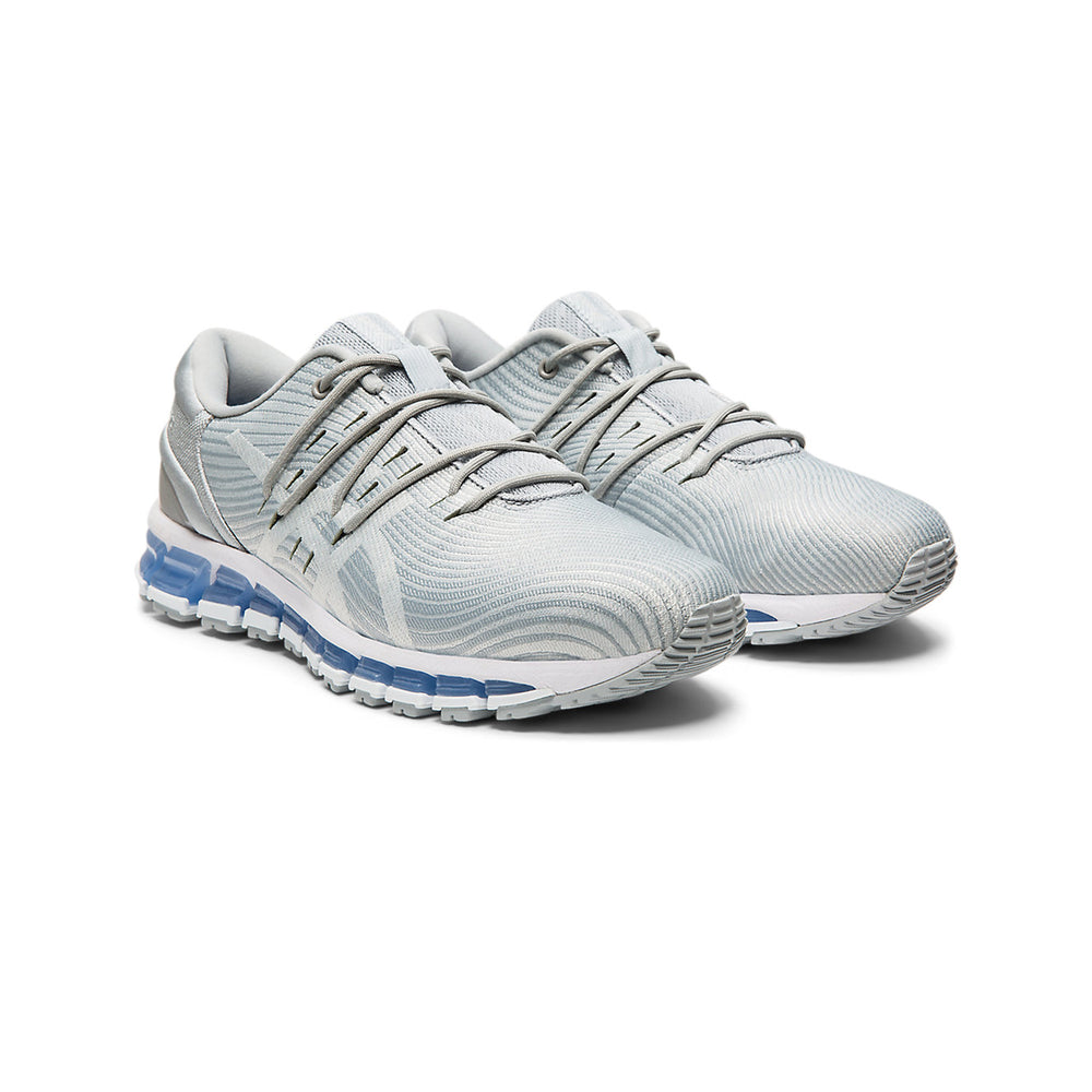 The ASICS Gel Quantum 360 4 'Glacier Grey' features a sleek, neutral-toned upper in Glacier Grey, crafted from a breathable mesh and synthetic material that ensures durability and comfort. This shoe is distinguished by its full-length GEL® cushioning system, which provides superior shock absorption and a smooth ride. The fluid design of the sneaker is complemented by reflective accents that enhance visibility during low-light conditions, while the robust rubber outsole offers exceptional grip and traction. The unique design includes a seamless, almost one-piece construction that minimizes irritation and enhances the overall fit.