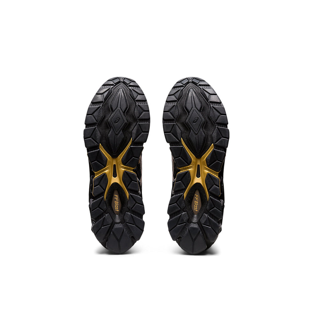 The ASICS Gel Quantum 360 VII 'Black / Pure Gold' stands as a pinnacle in ASICS' renowned lineup, blending cutting-edge technology with a sophisticated design aesthetic. This model is crafted for those who demand performance and style, offering an unparalleled running experience with its innovative features.