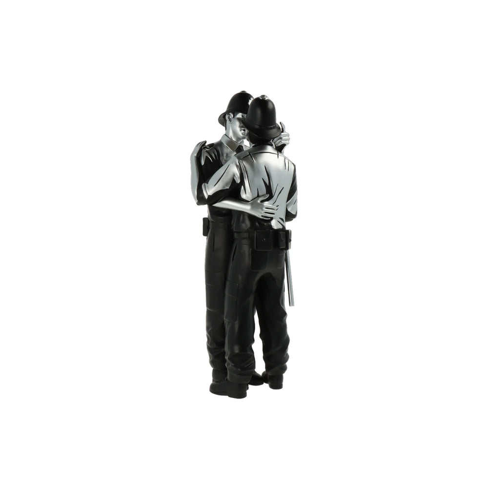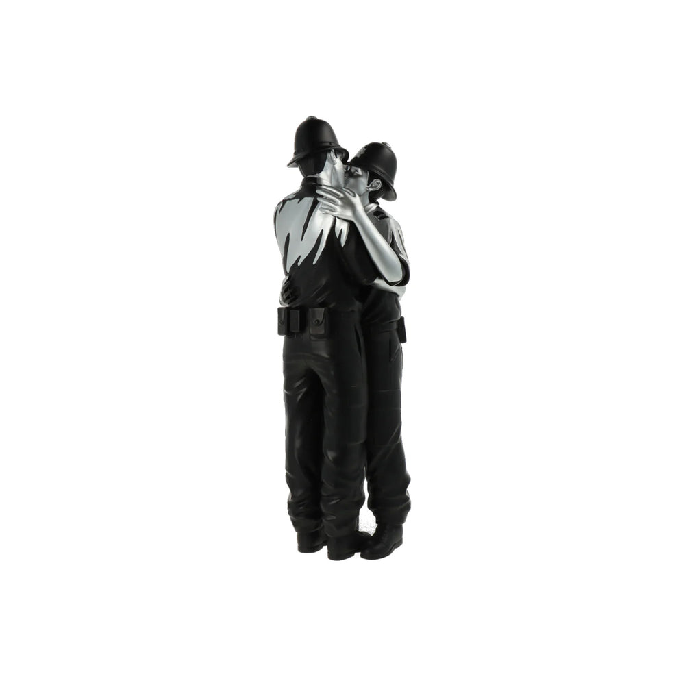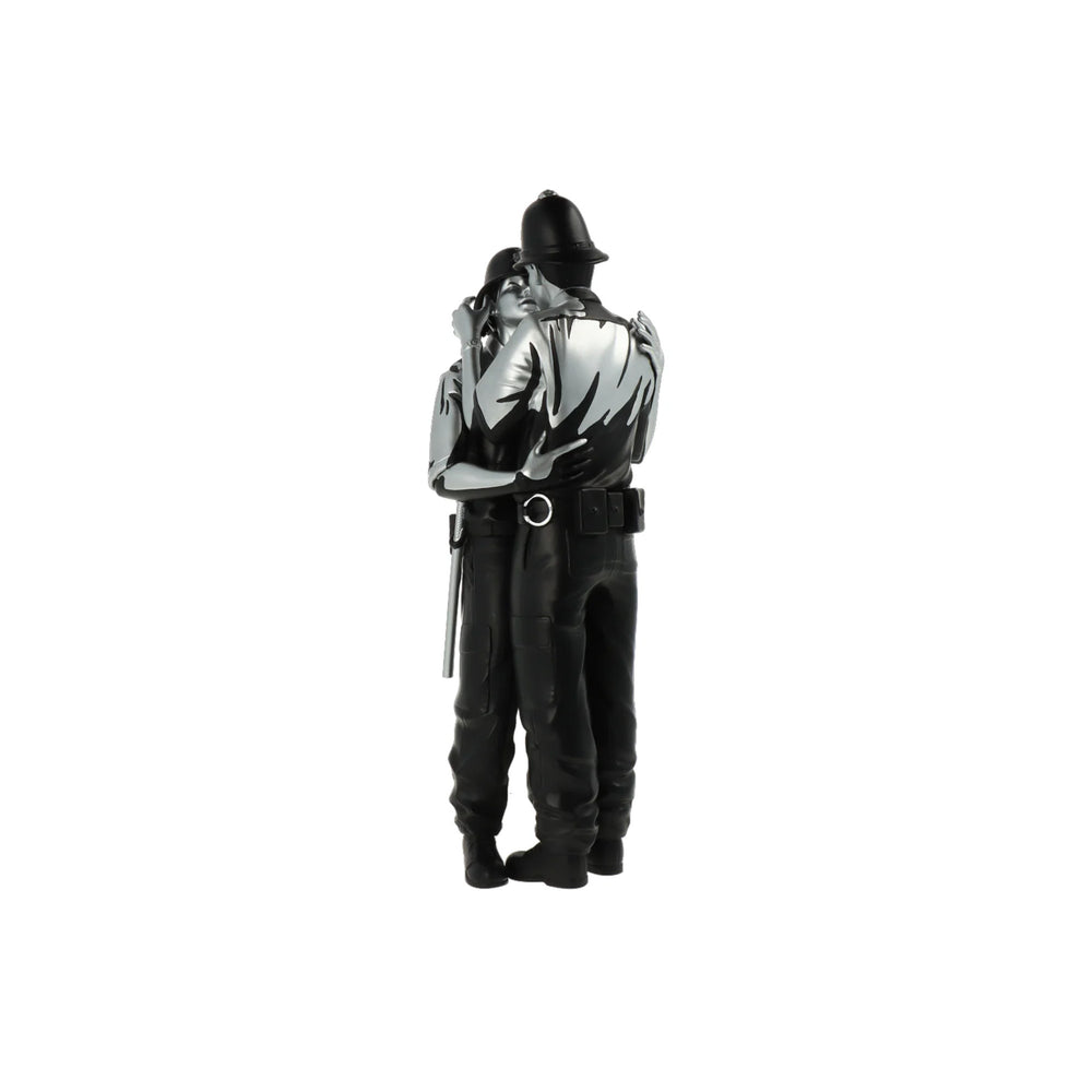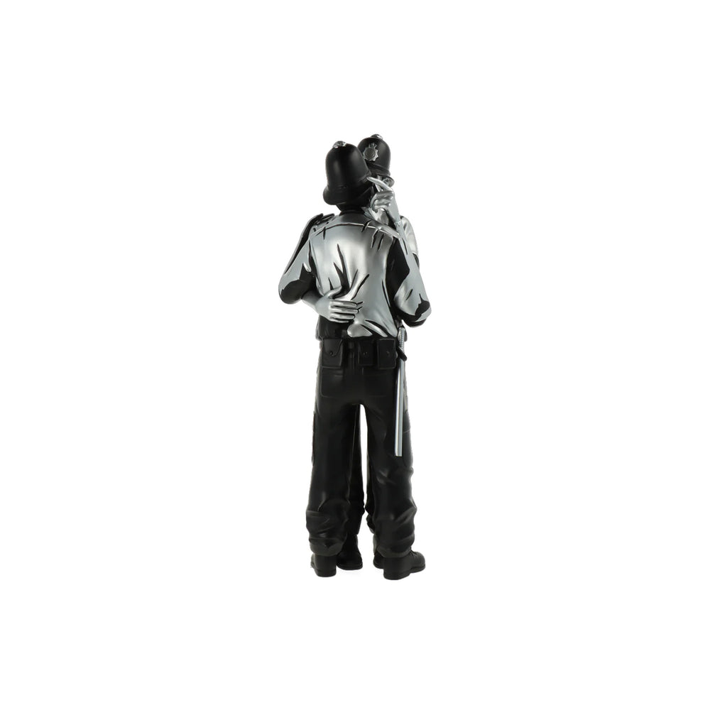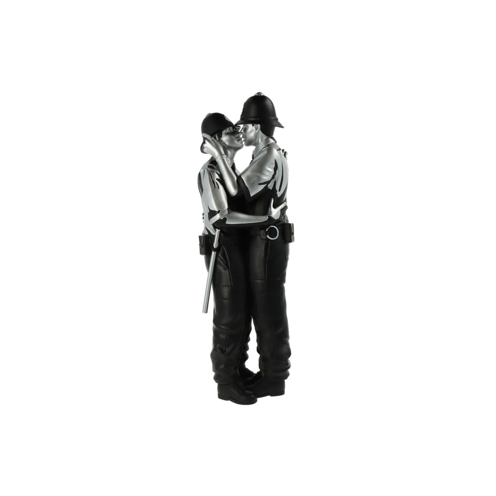 Kissing Coppers returns! The third colourway of the highly sought after piece brings a luxurious black and gold finish to the iconic stencil art. Icons of authority in a tender intimate moment. Advocating the acceptance of different sexual-identities by society and humanising a force that has been seen as violent in recent times. No matter which side we are on, or which pockets of society we belong to, we all seek a very human emotion - love. Let Kissing Coppers (Gold Rush) illuminate your collection with its gleaming finish, don't miss your chance to own this remarkable piece of art that is now immortalised as a special edition Polystone figure.