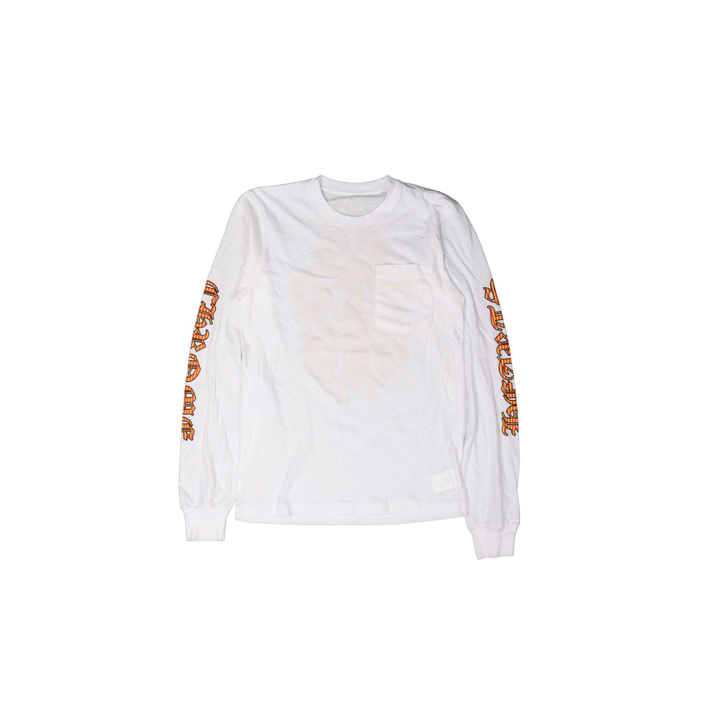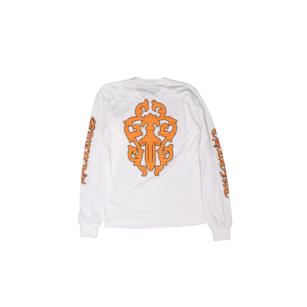 The Chrome Hearts Long Sleeve Striped Pocket T-Shirt 'White Yellow' embodies a fusion of luxury and streetwear, representing the brand's distinctive take on casual fashion. Chrome Hearts, renowned for its commitment to craftsmanship and quality, elevates the classic long-sleeve tee into a statement piece that blends sophisticated design with everyday practicality.