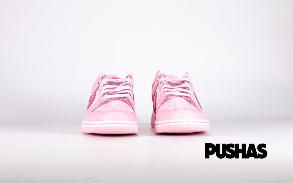 Buy the Nike Dunk Low 'Triple Pink' PS (2022) the model boasts a leather construction that bears a combination of light and dark hues of pink across its entire profile. Finally, a Hyper Pink hue is utilized for the Swooshes and branded details while a matching pink rubber sole rounds out the style.