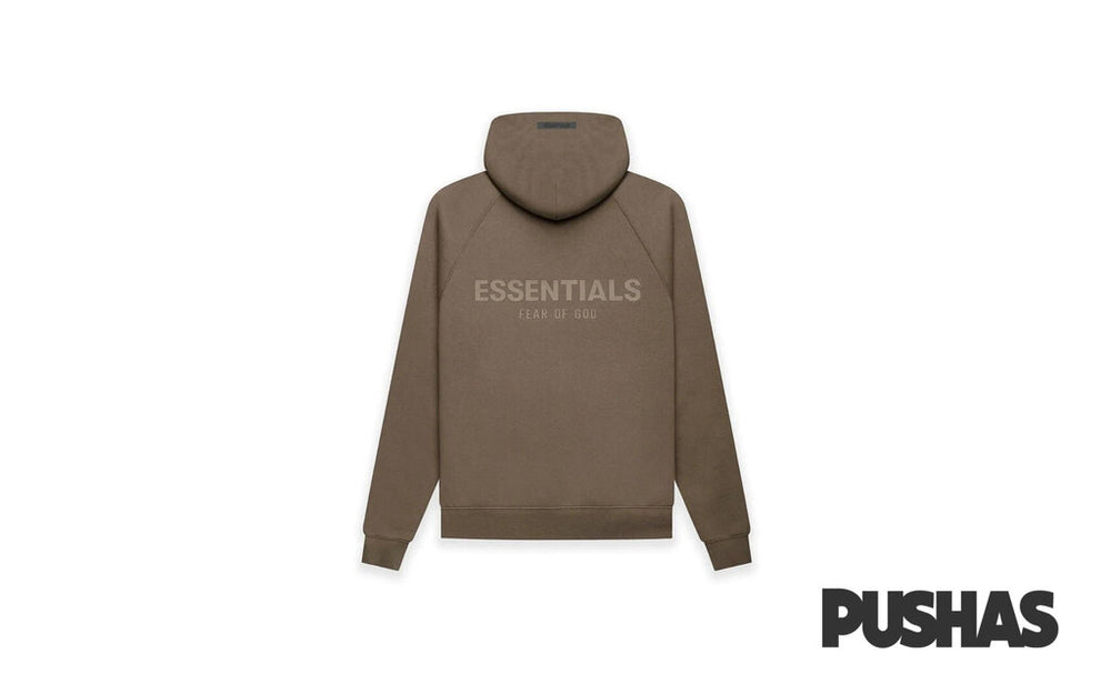 As part of the Spring 2021 debut release, this taupe Fear of God Essentials Hoodie was offered alongside the company's first-ever kids collection. The first drop of the new Spring 2021 season from Fear of God Essentials featured more than 70 new items, including this hoodie, which was offered in four different hues.