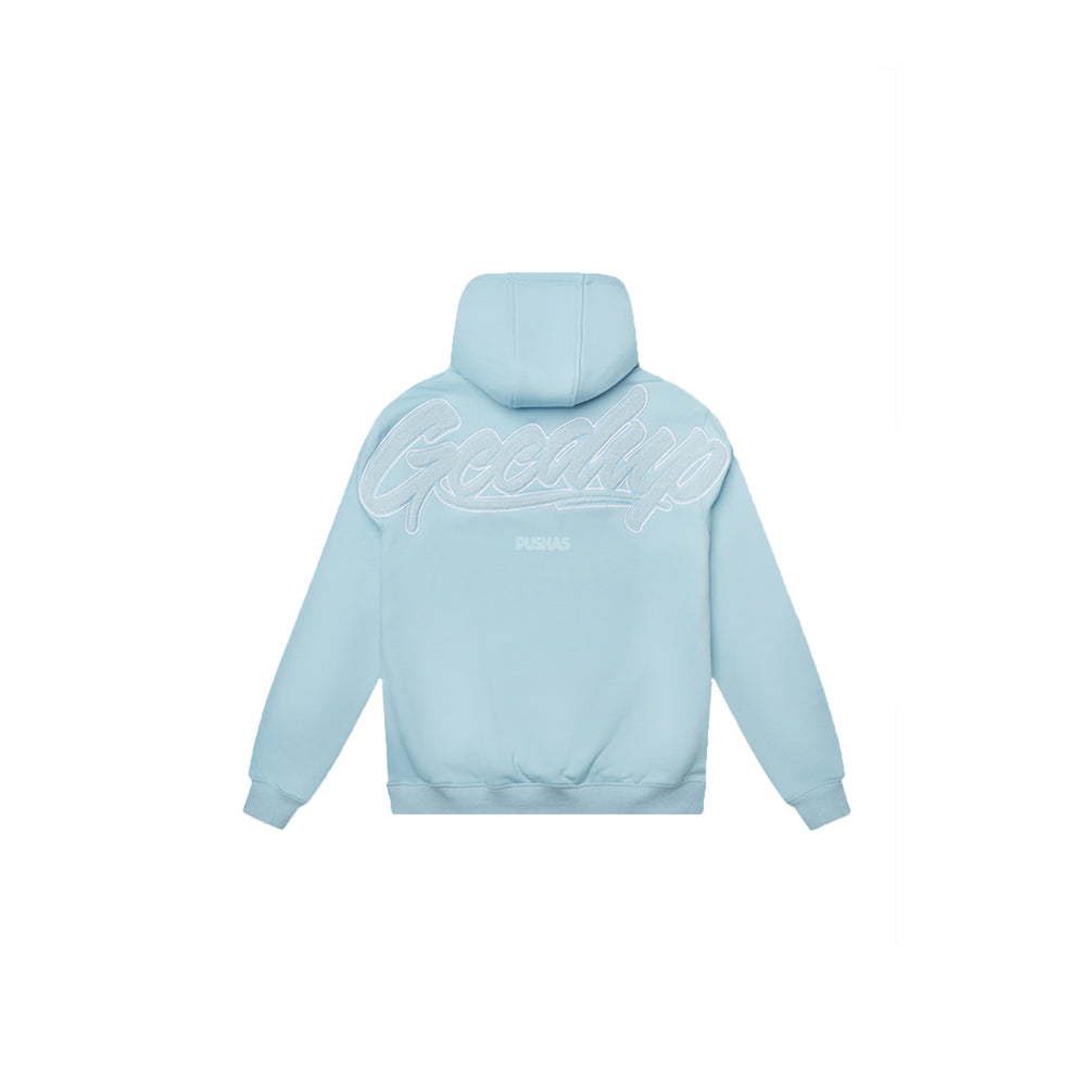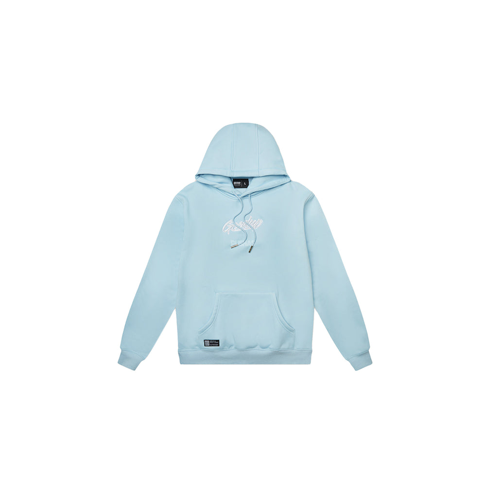 Crafted from a premium cotton-polyester blend, the 'Cool Blue' hoodie showcases a perfect balance of softness and durability. The fabric ensures a cozy yet breathable fit, ideal for both brisk mornings and relaxed evenings. The hoodie is adorned with Geedup's iconic script logo, meticulously embroidered in white on the chest, providing a striking contrast against the vibrant cool blue backdrop. This minimalist yet bold design is further accentuated by ribbed cuffs and a hem that offer a snug, flattering fit.